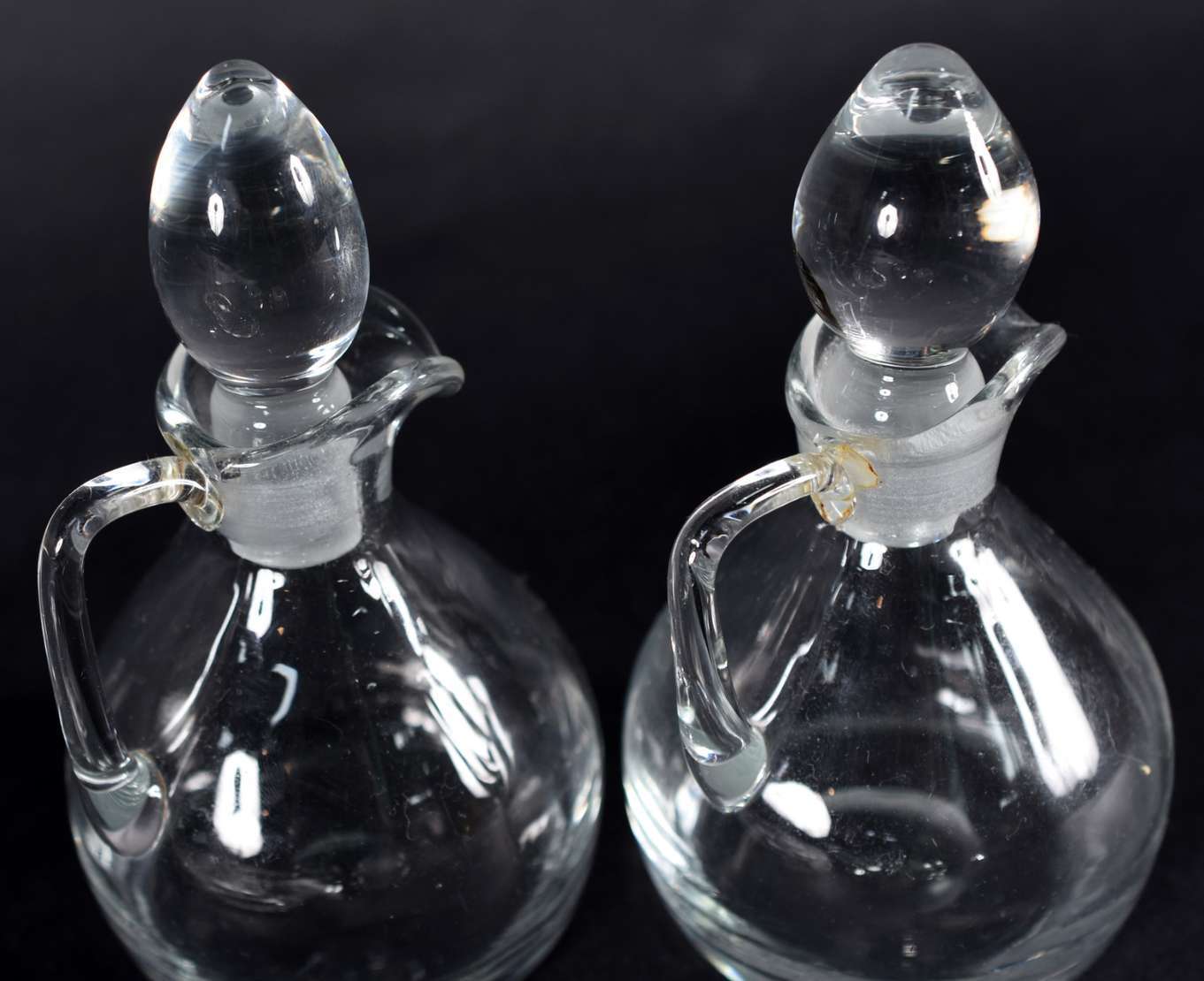 Par de perfumeiros de vidro verde, guarnição de prata.