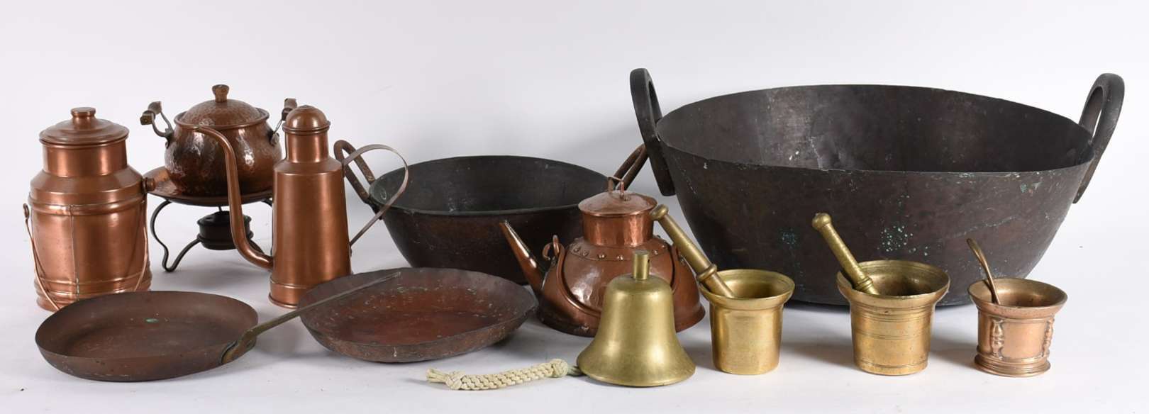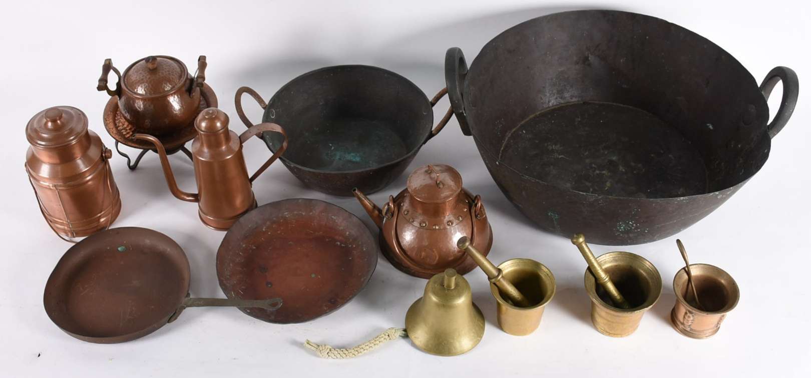 Diversas peças, sendo balança com dois pratos e estojo de madeira com pesos, 2 estribos para montaria de metal, vaso ...
