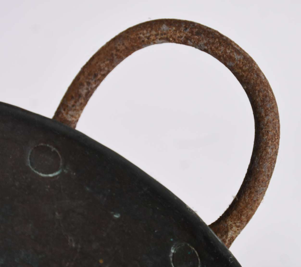 Duas peças sendo sopeira de cerâmica de faiança italiana e bandeja de faiança com grade de metal.
