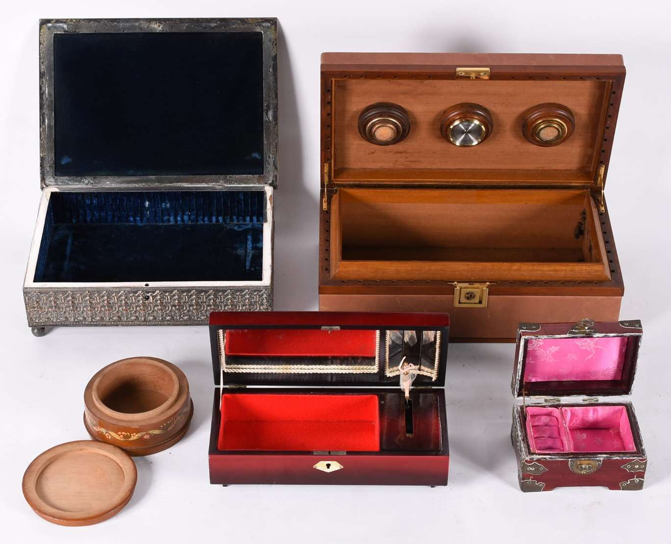 Diversas peças, sendo balança com dois pratos e estojo de madeira com pesos, 2 estribos para montaria de metal, vaso ...