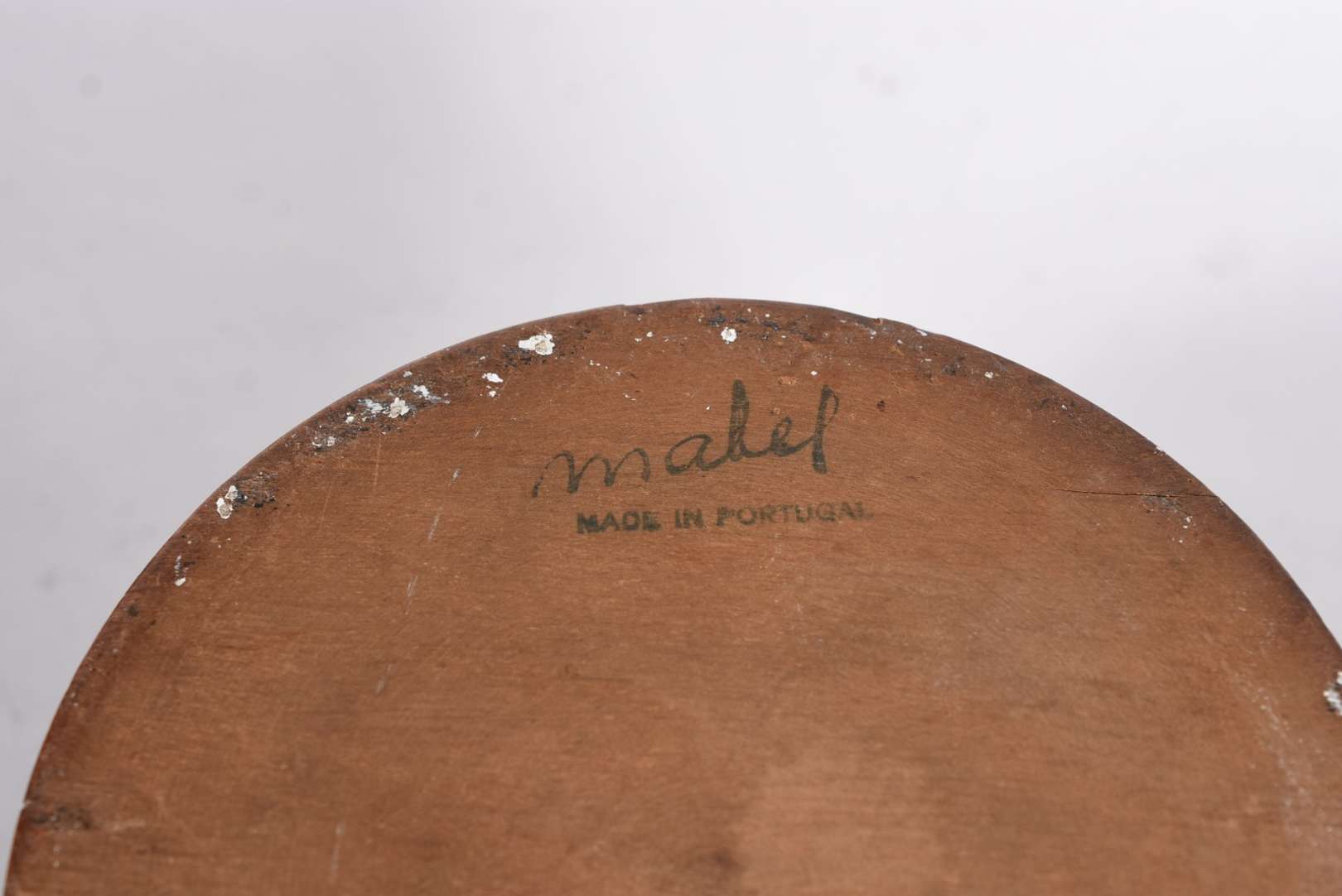 Duas peças sendo sopeira de cerâmica de faiança italiana e bandeja de faiança com grade de metal.