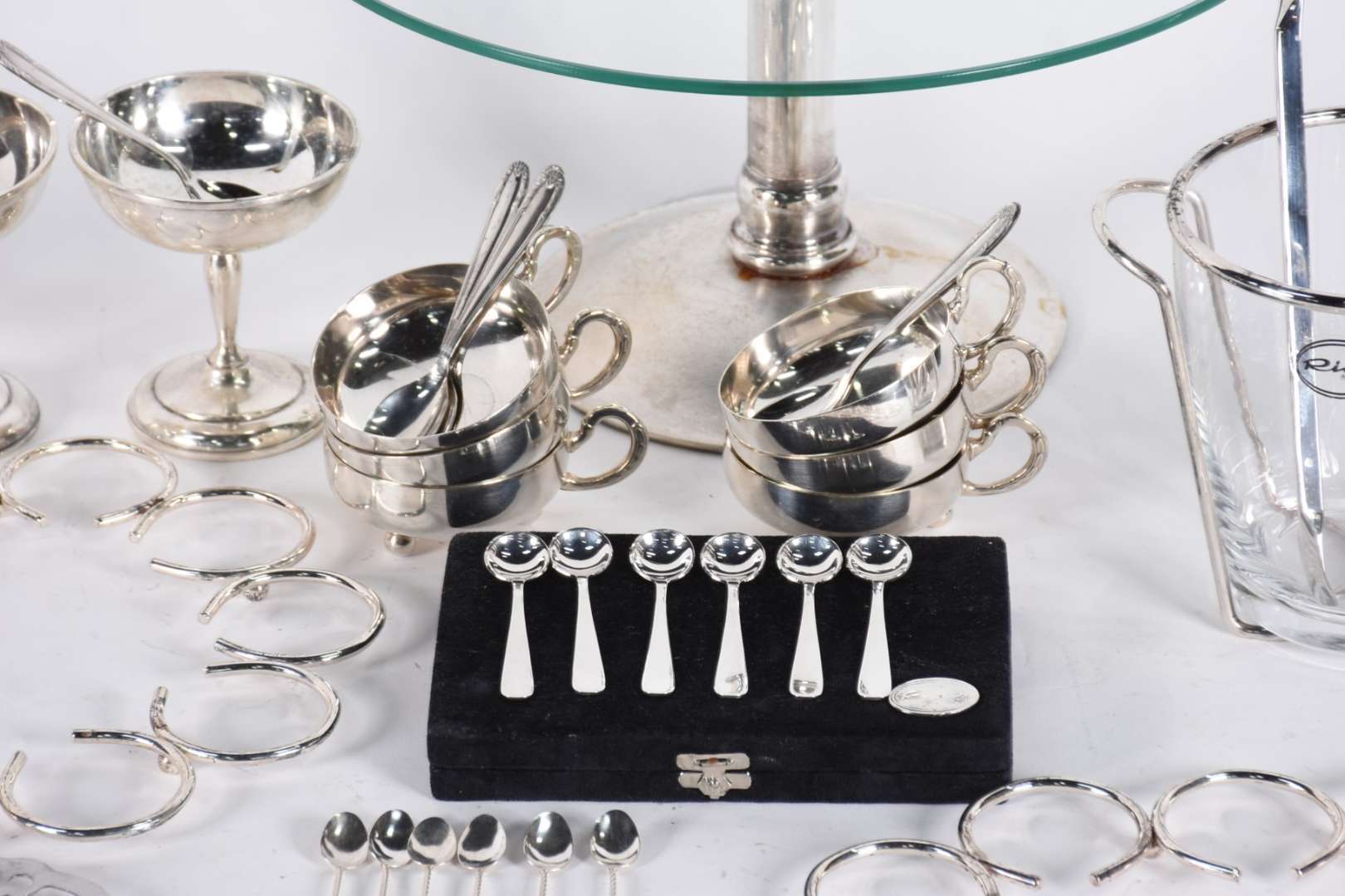 Diversas peças de vidro, sendo par de galhetas com presentoir, 2 pesos de papel decorados com flores internas e cane...