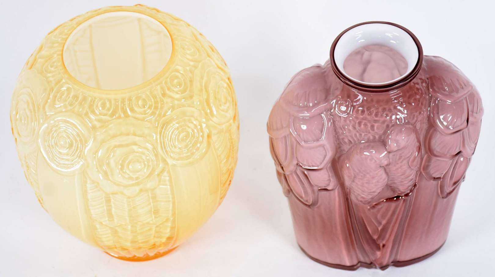 Vaso de vidro leitoso com cavalos em relevo.