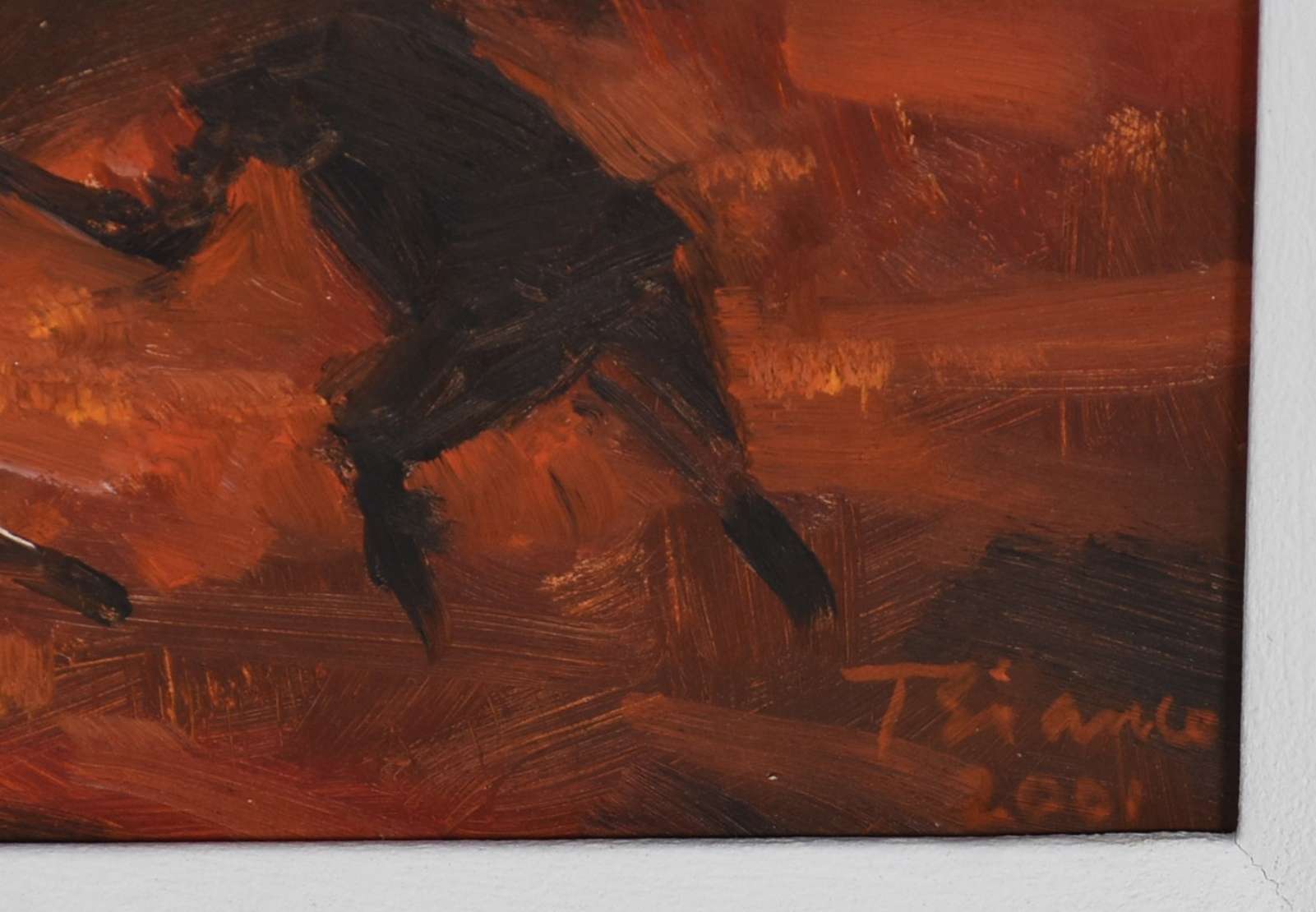 Óleo sobre eucatex, datado 2001.
