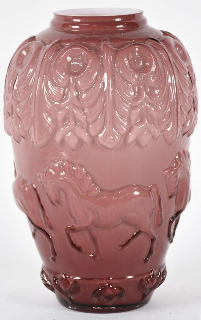 Vaso de opalina na cor bege decorado com pássaro e flores em policromia, borda feitio babado (um dente da borda quebr...