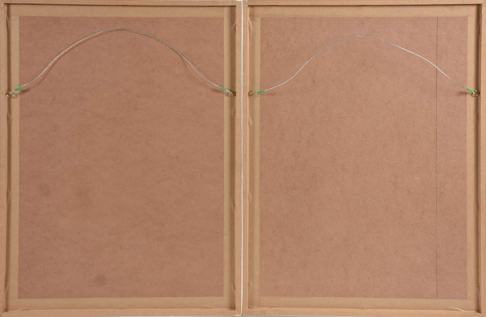 Par de gravuras japonesas sobre tecido colado em cartão.