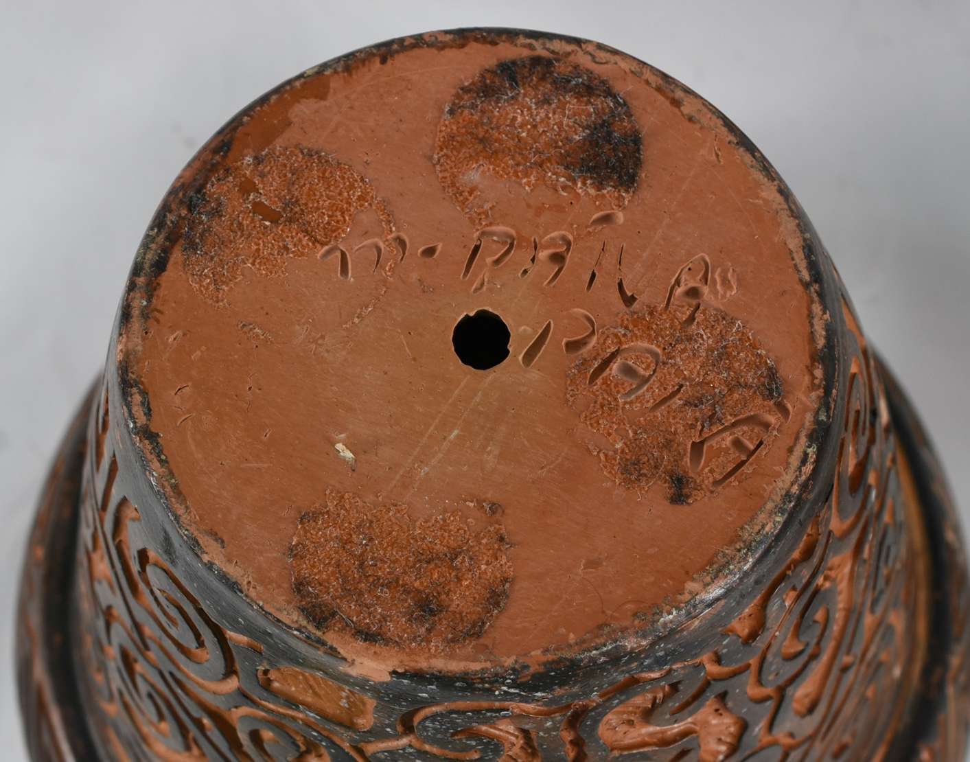 Cachepot em faiança oriental (fio de cabelo na borda).
