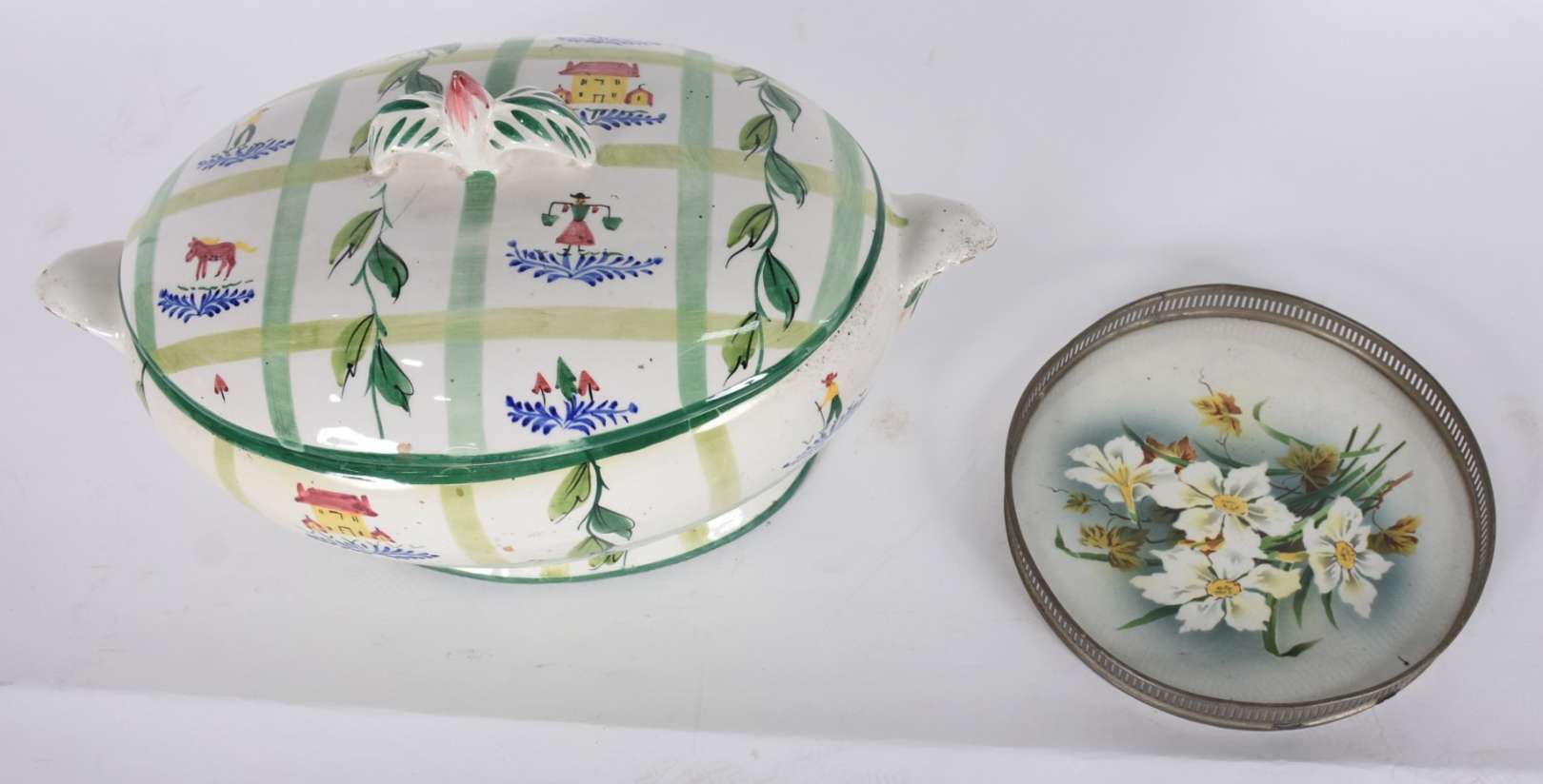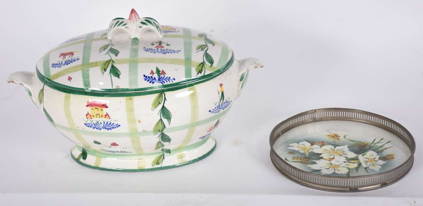 Diversas peças, sendo balança com dois pratos e estojo de madeira com pesos, 2 estribos para montaria de metal, vaso ...