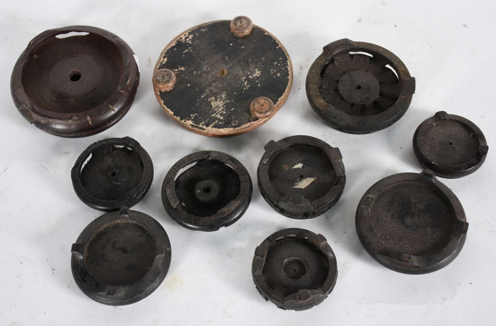 Diversas peças, sendo balança com dois pratos e estojo de madeira com pesos, 2 estribos para montaria de metal, vaso ...