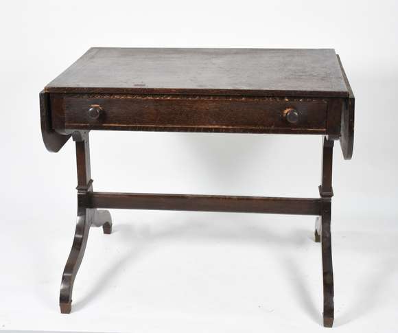 Mesa mineira com abas, uma gaveta, madeira com desgastes.