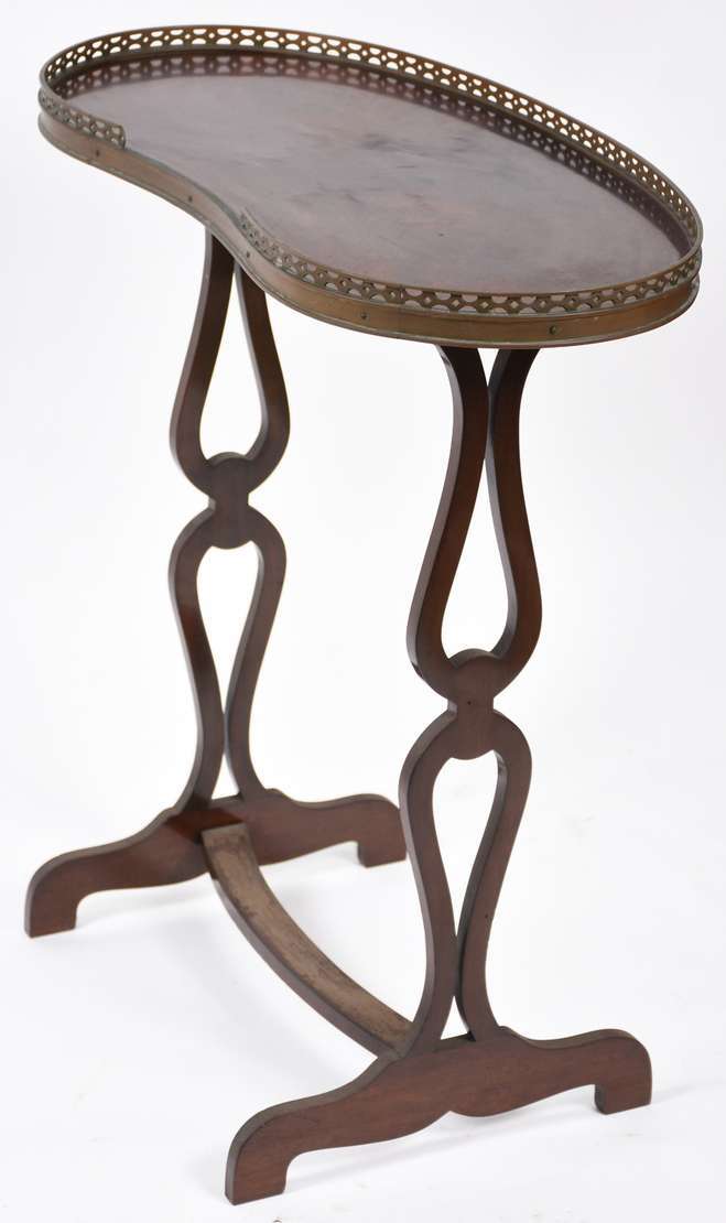 Belíssima e antiga mesa de escritório ou de apresentação em jacarandá, tampo retangular com bordas trabalhadas, perna...