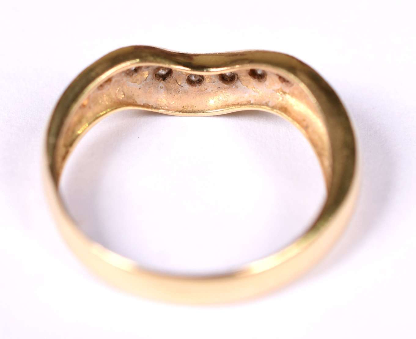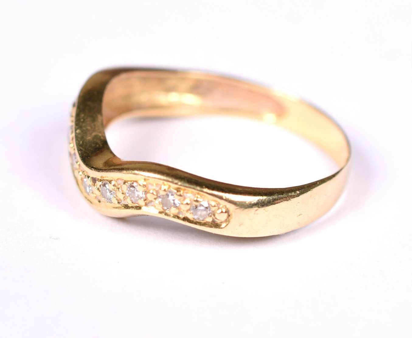 Anel de ouro amarelo contrastado 750, aro 16 (Por motivos de segurança a peça não se encontra na loja).
