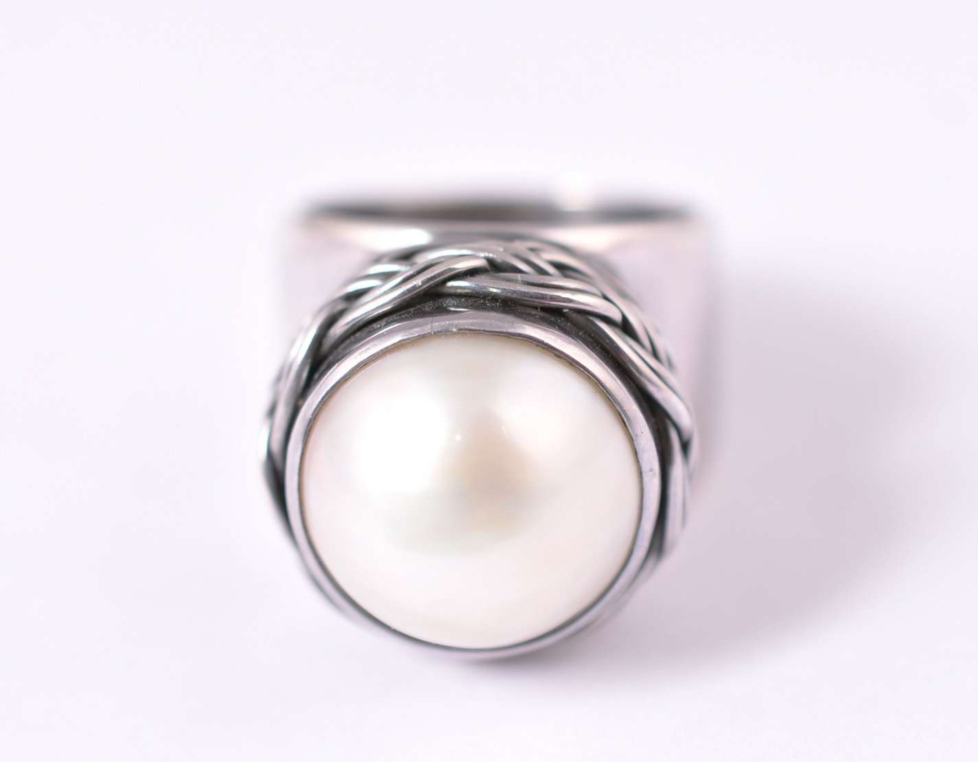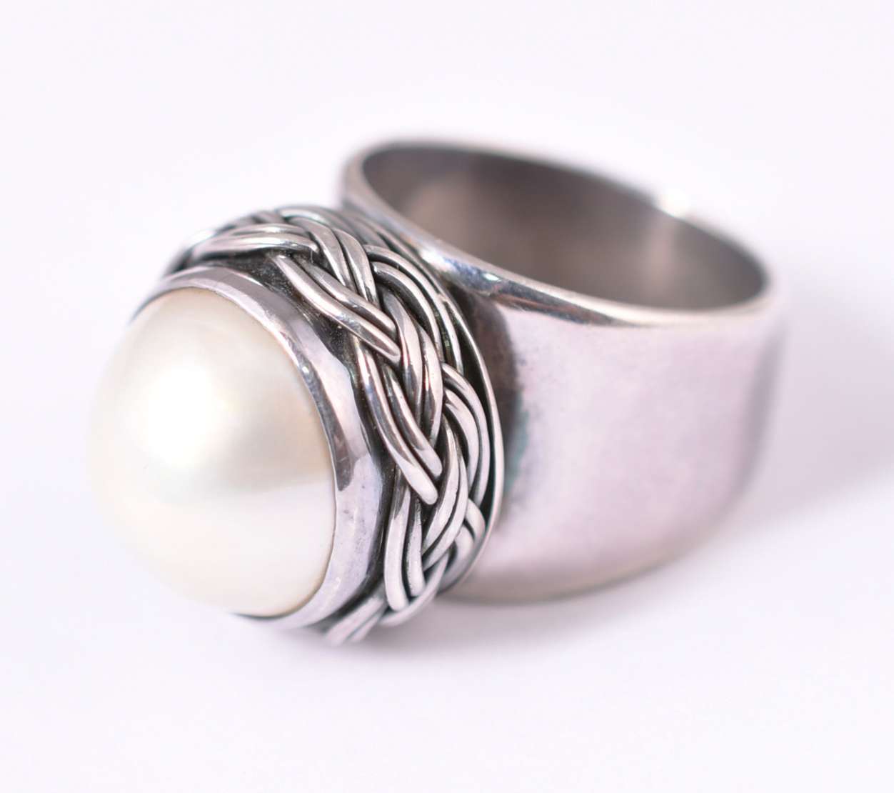 Anel de ouro contraste 750 com brilhante e perola cultivada, aro 21 (Por motivos de segurança a peça não se encontra ...