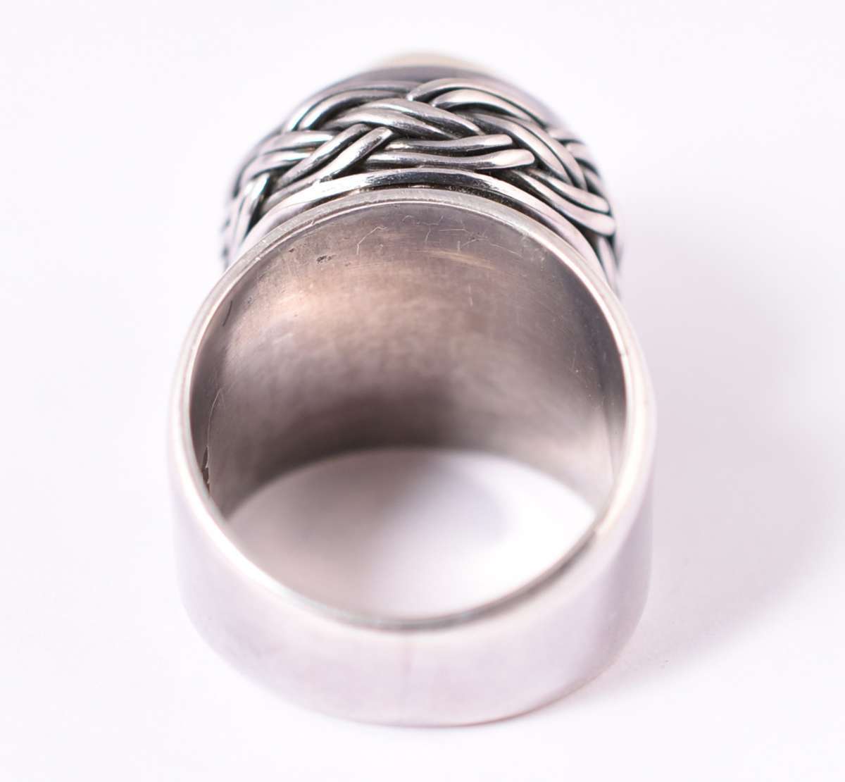 Anel em prata 925 mls, contrastada, feitio pedra de cristal piramidal lapidada com 3 astes, aro 21 (Por motivos de se...