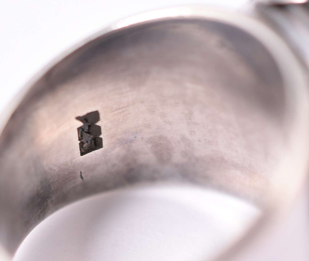 Anel de ouro contraste 750 com safiras brancas e negras, aro 15 (Por motivos de segurança a peça não se encontra na l...