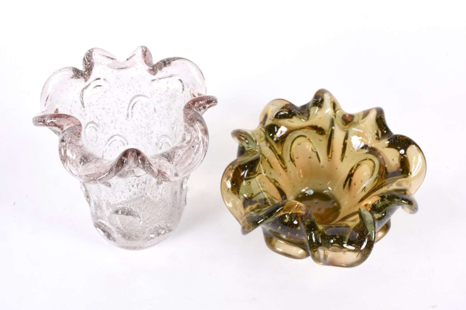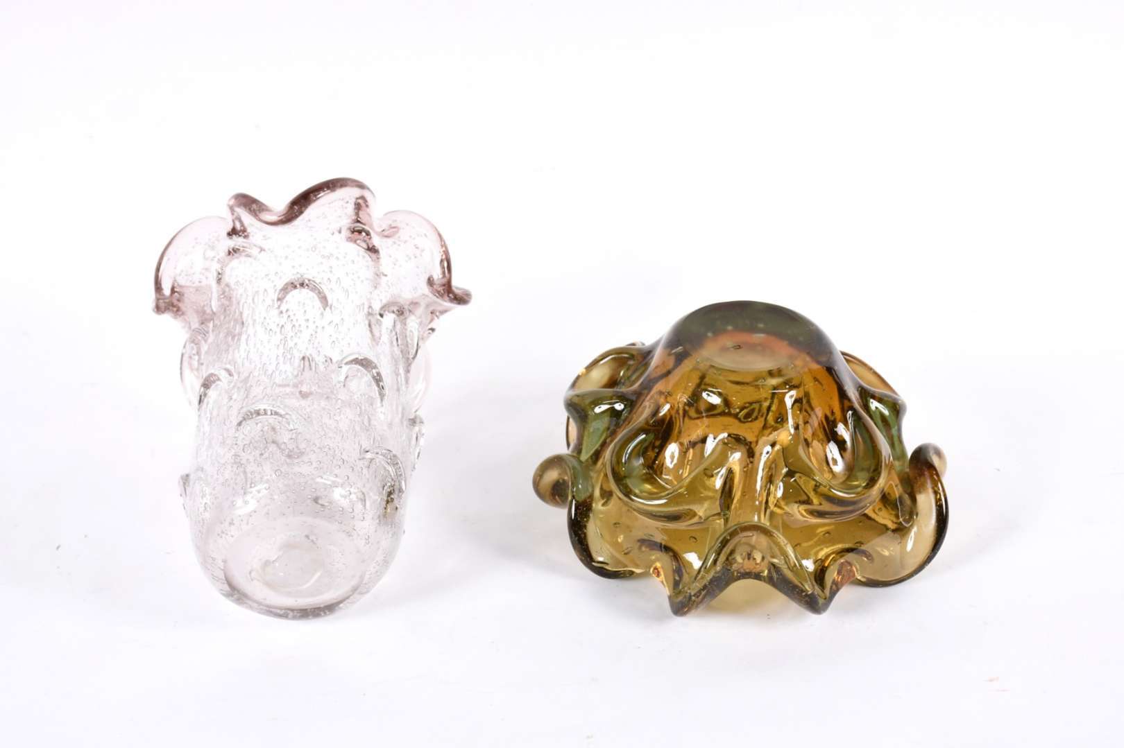Par de pequenas bombonieres de vidro lapidado.