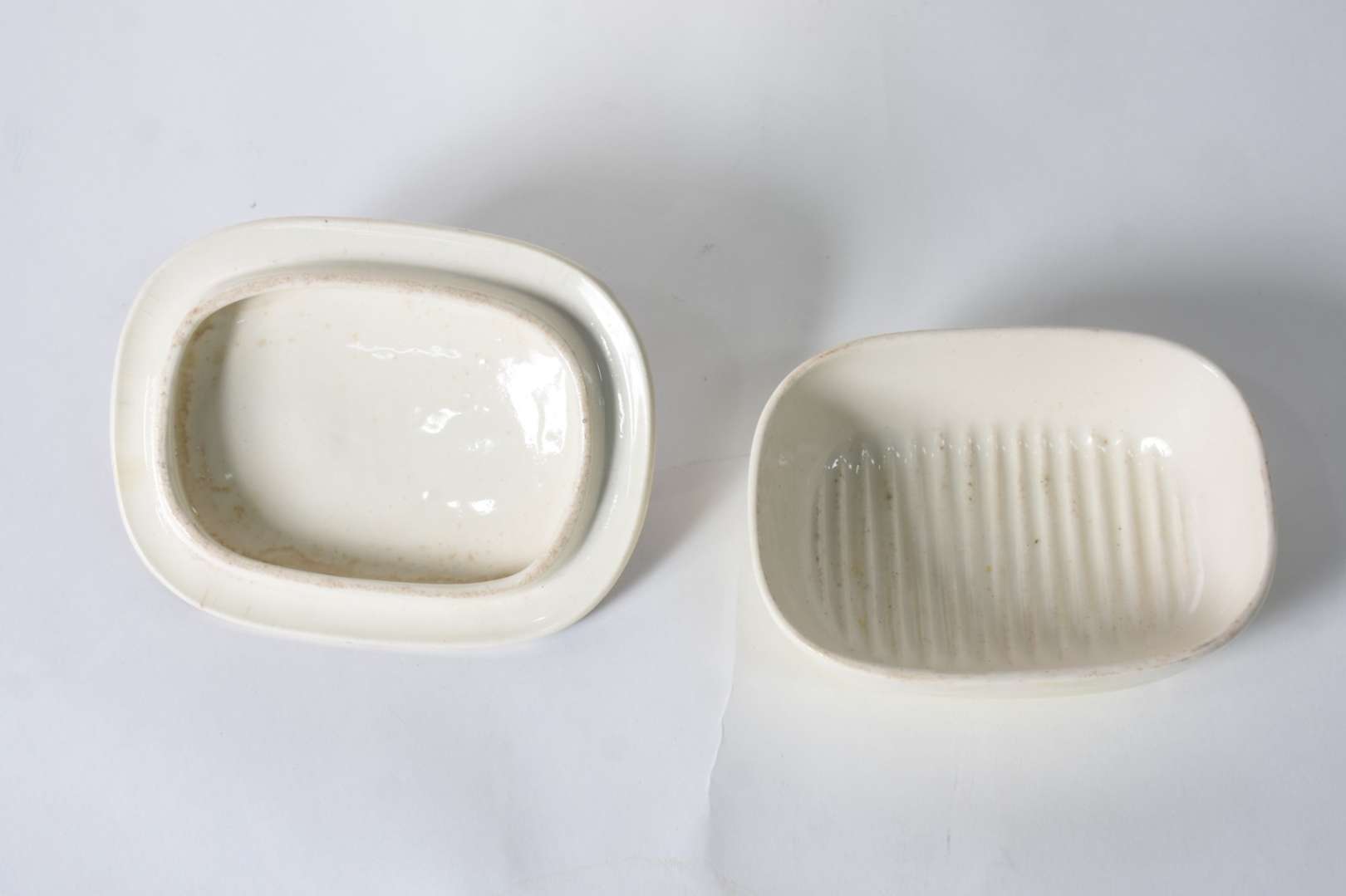 Duas peças, sendo pente feminino de tartaruga e perfumeiro azul de vidro com borboleta e flores esmaltadas de branco.