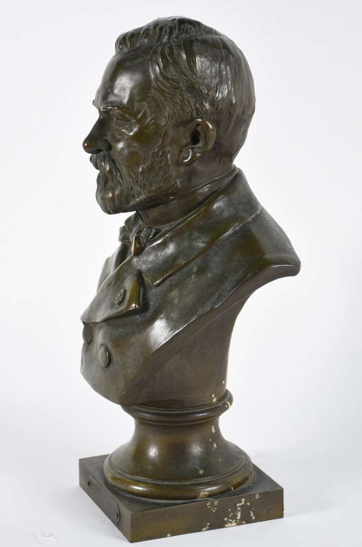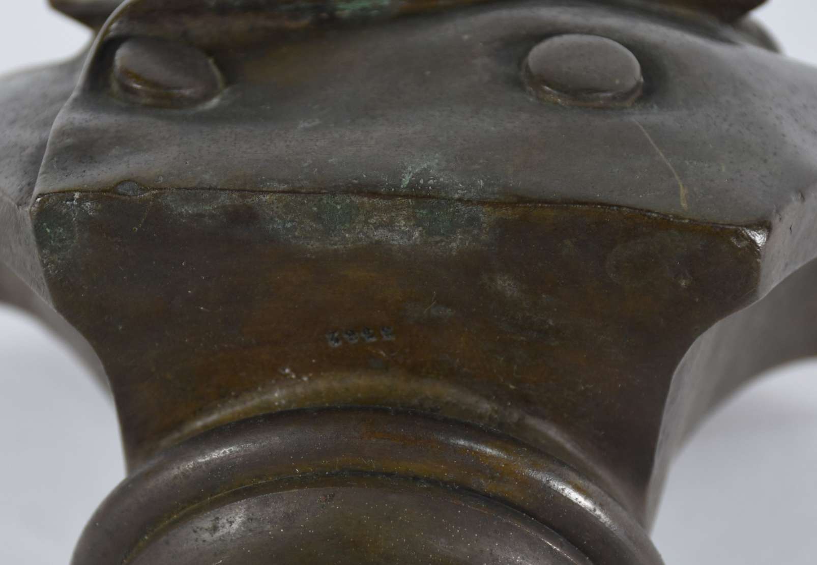 Escultura de metal dourado representando "Divindade", peanha de madeira.