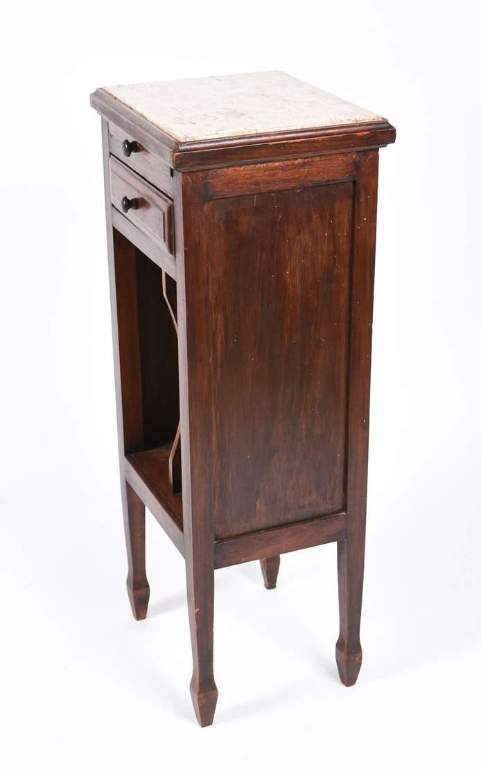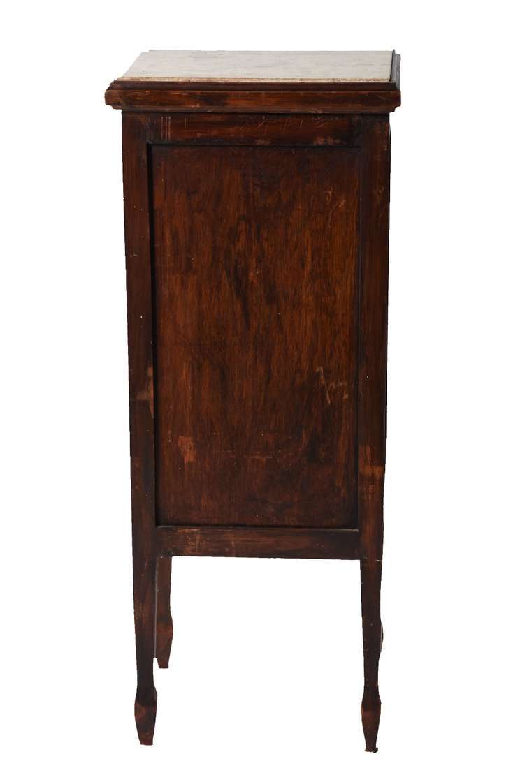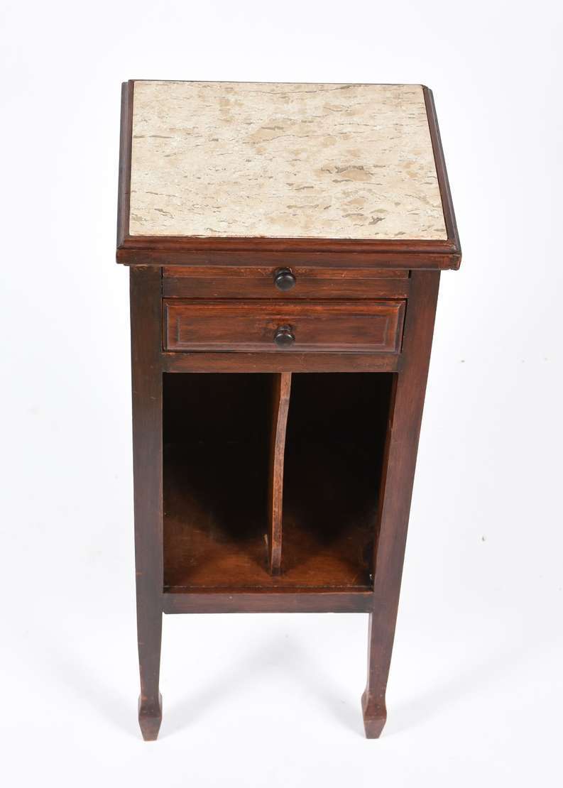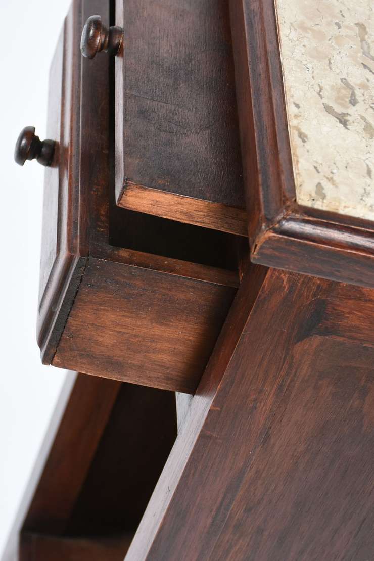 Móvel revisteiro de madeira nobre e tampo de mármore (pé colado).
