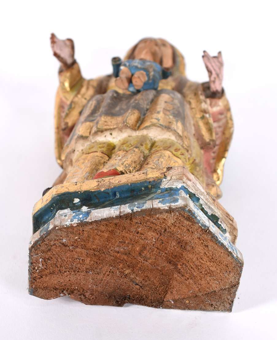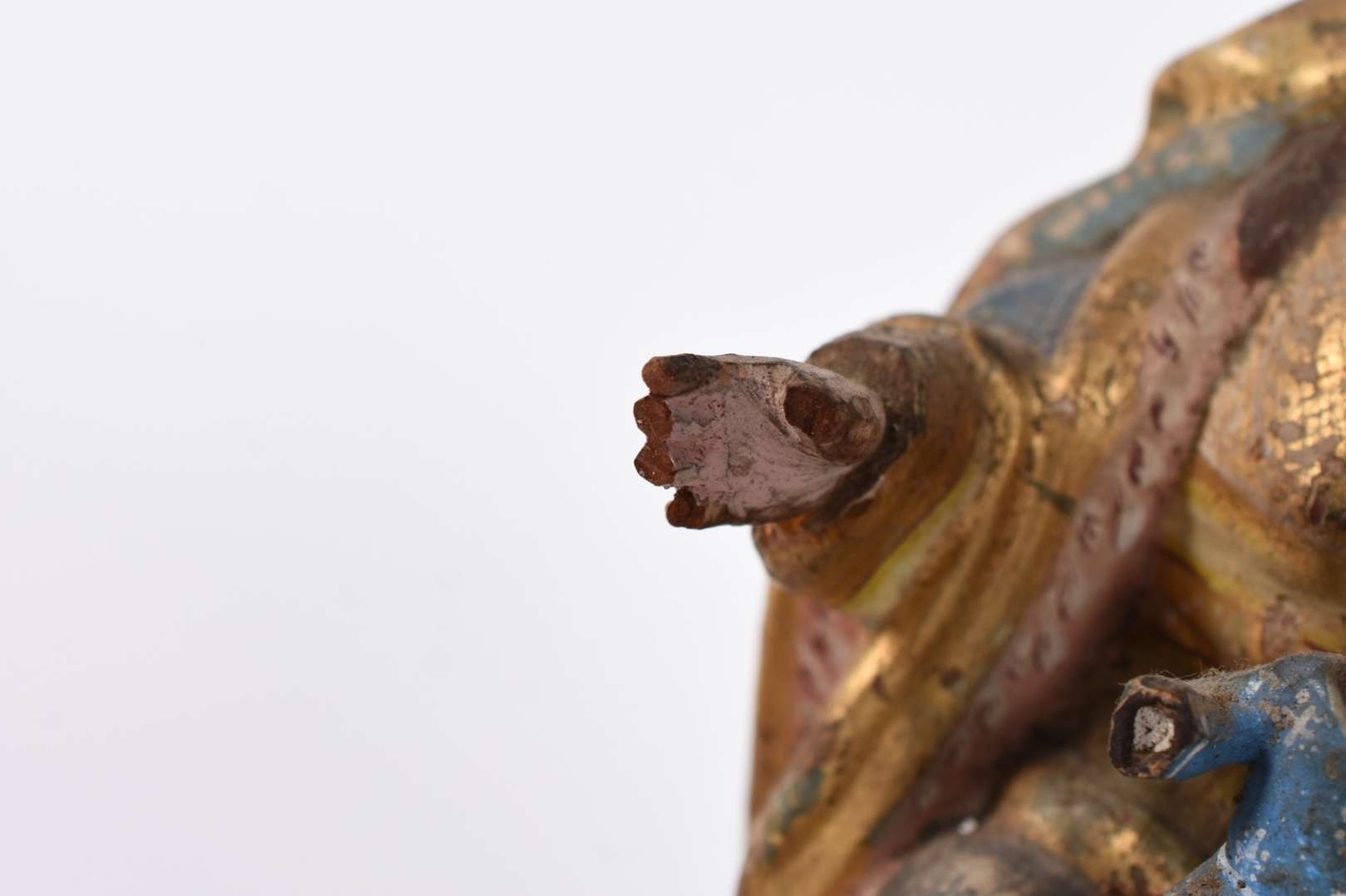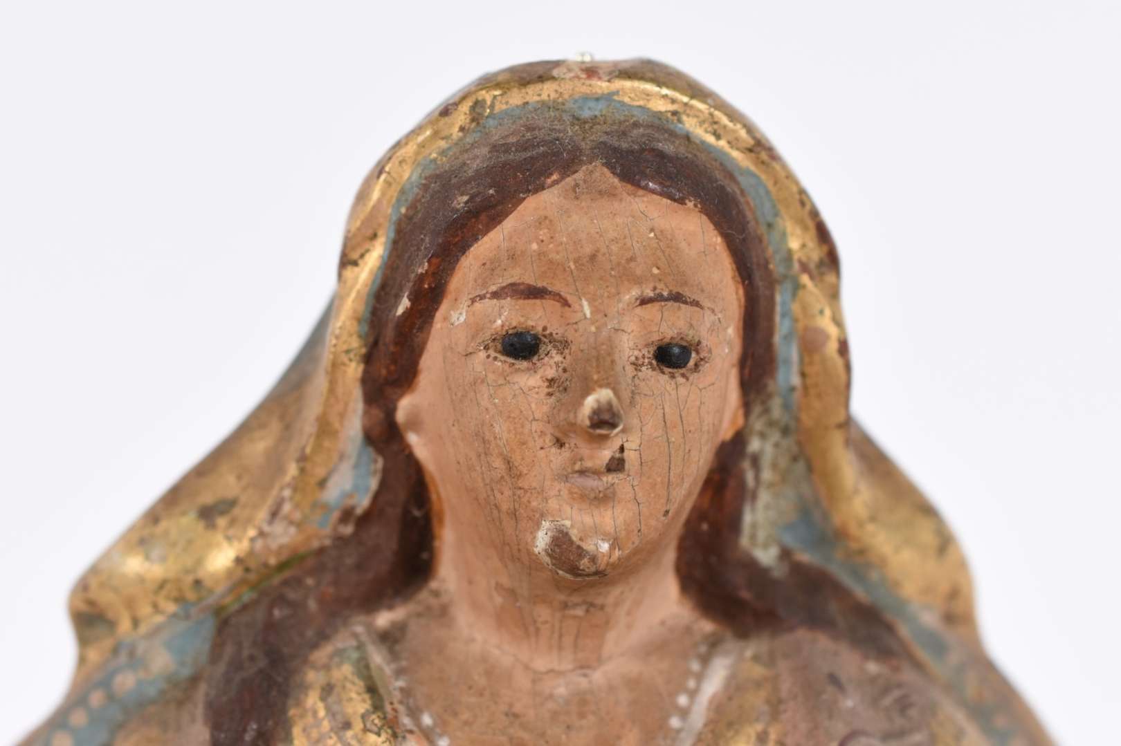 Imagem de Nossa Senhora com menino de madeira policromada e dourada (desgastes).