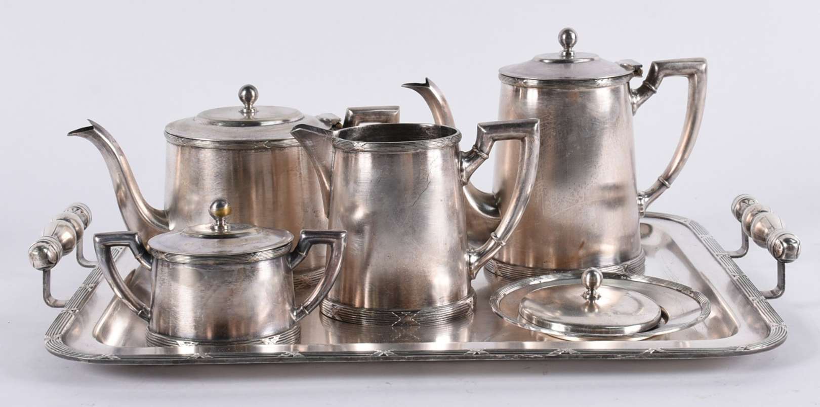 Cinco peças diversas de metal prateado, sendo duas fruteiras e tres bowls.