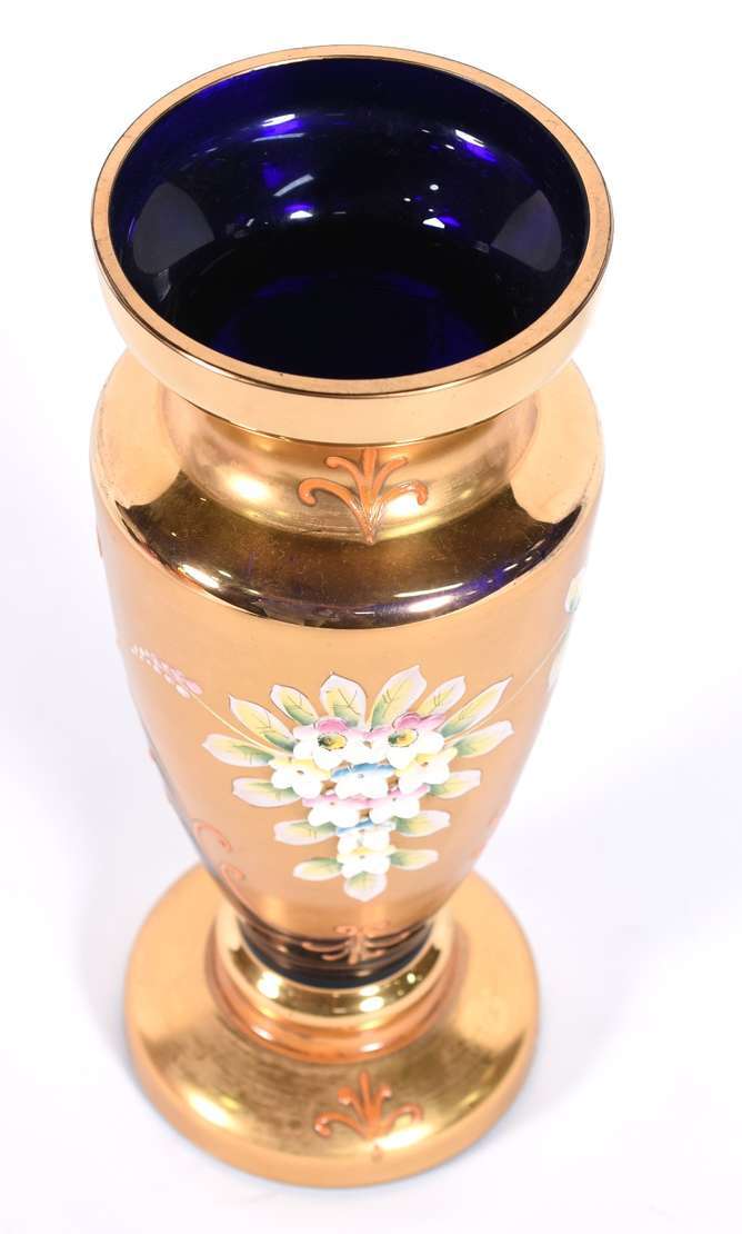Vaso de murano Seguso com pó de ouro e mesclas azuis.