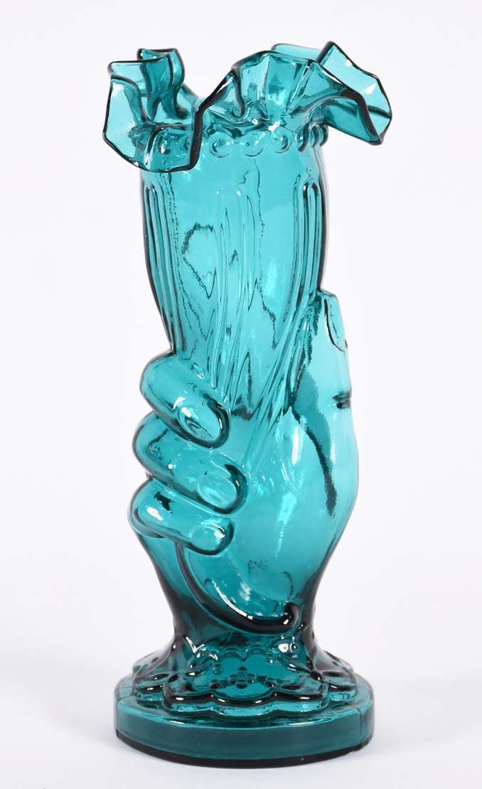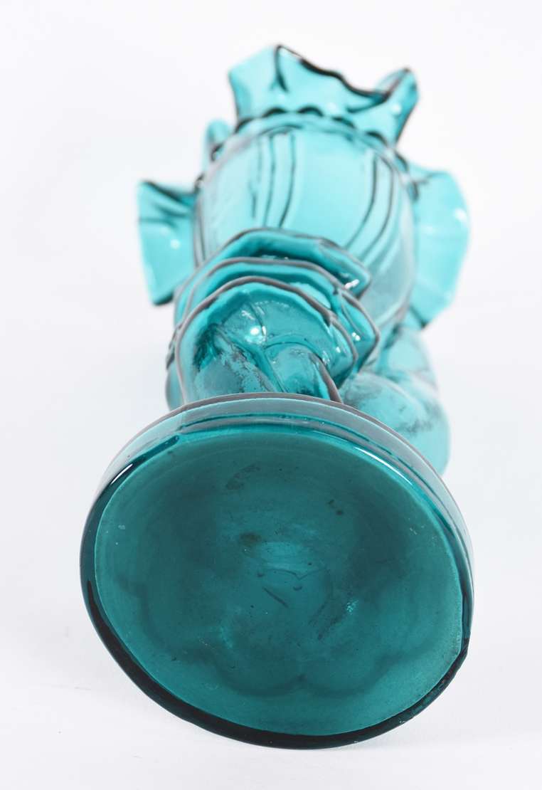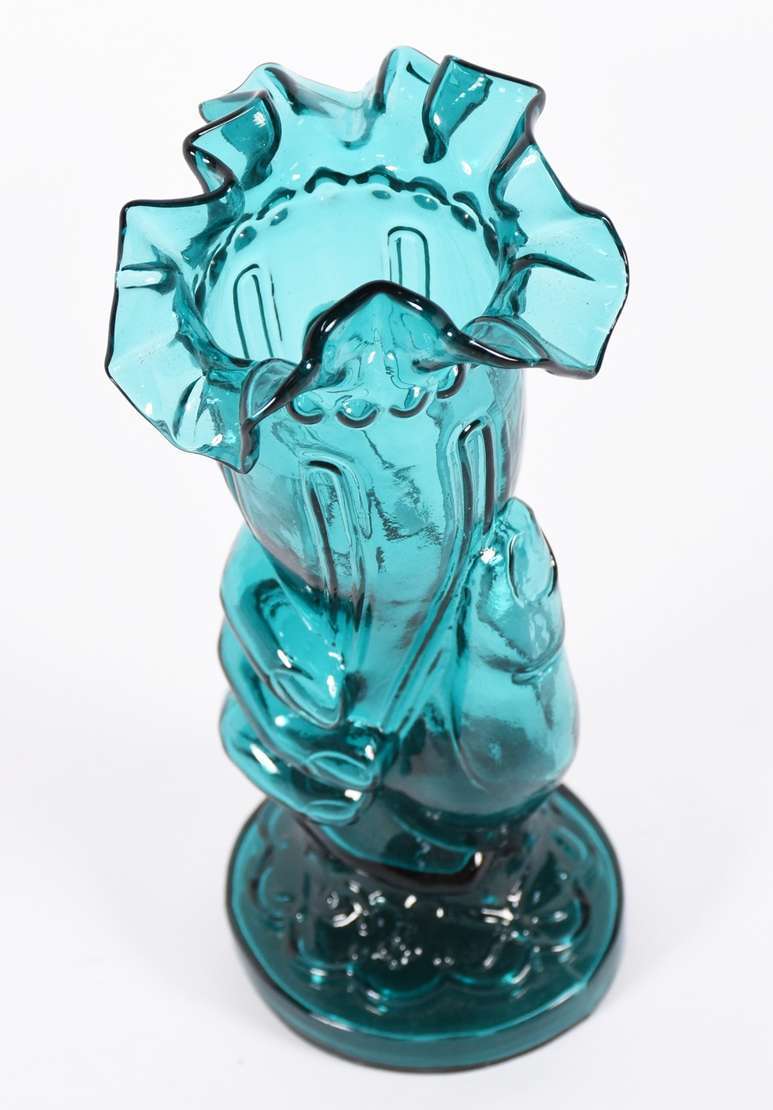 Jarra de vidro leitoso na cor branca com papagaios em relevo.