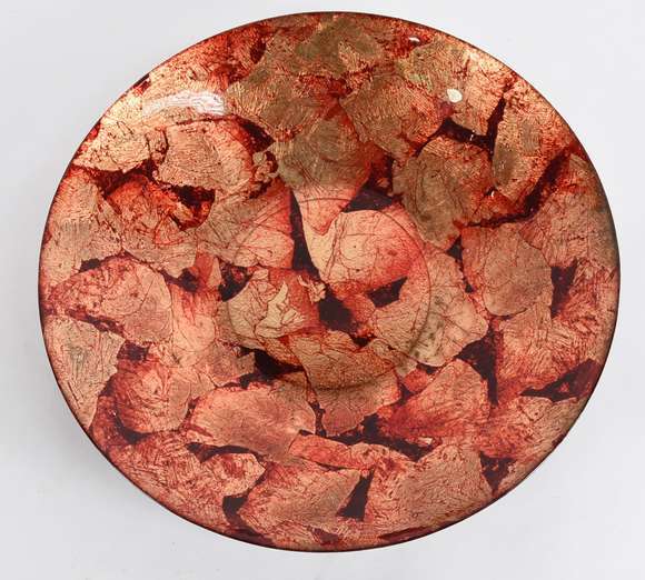 Fruteira de vidro decorativo na cor âmbar com 2 andares e pó de ouro.