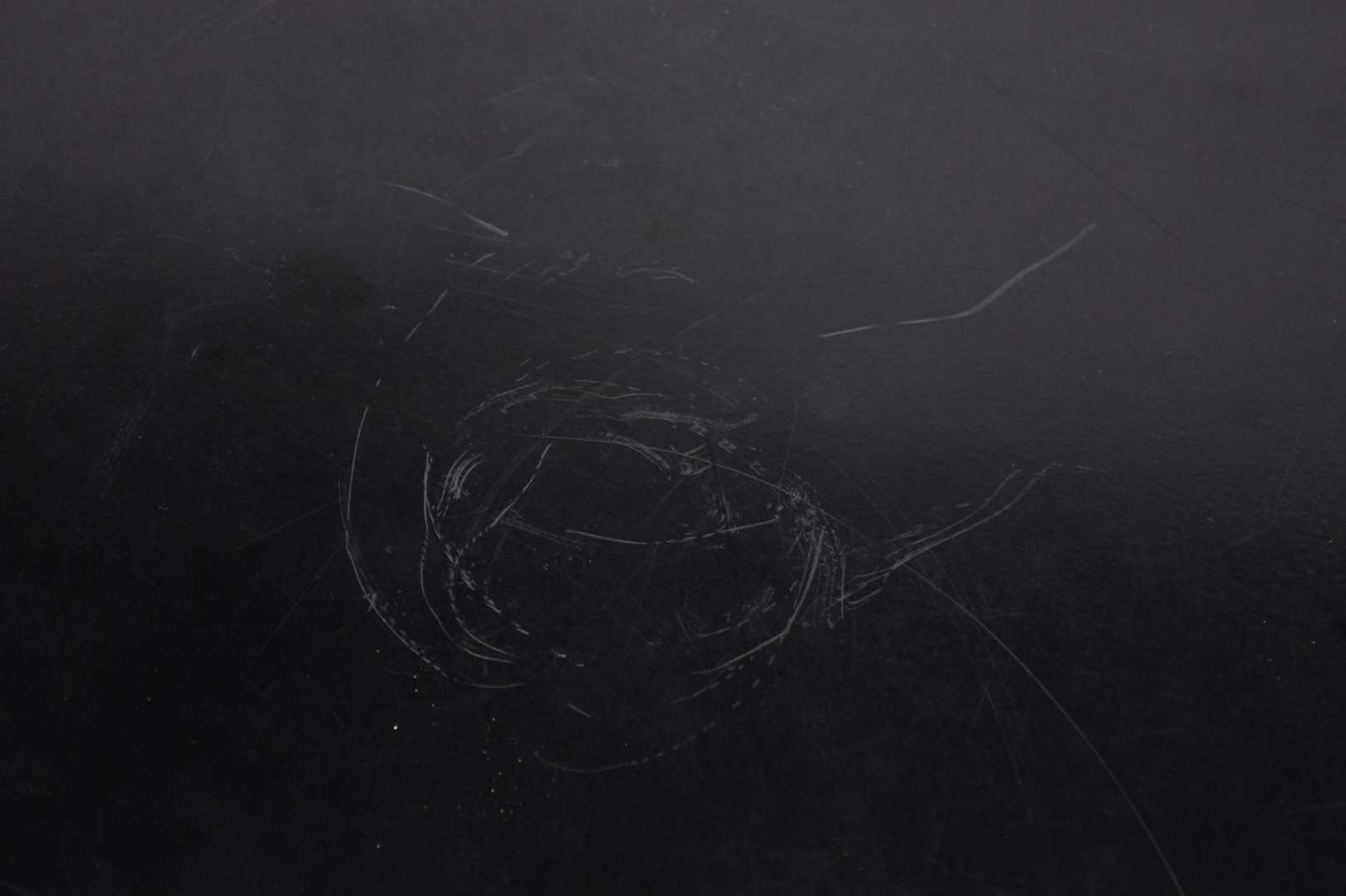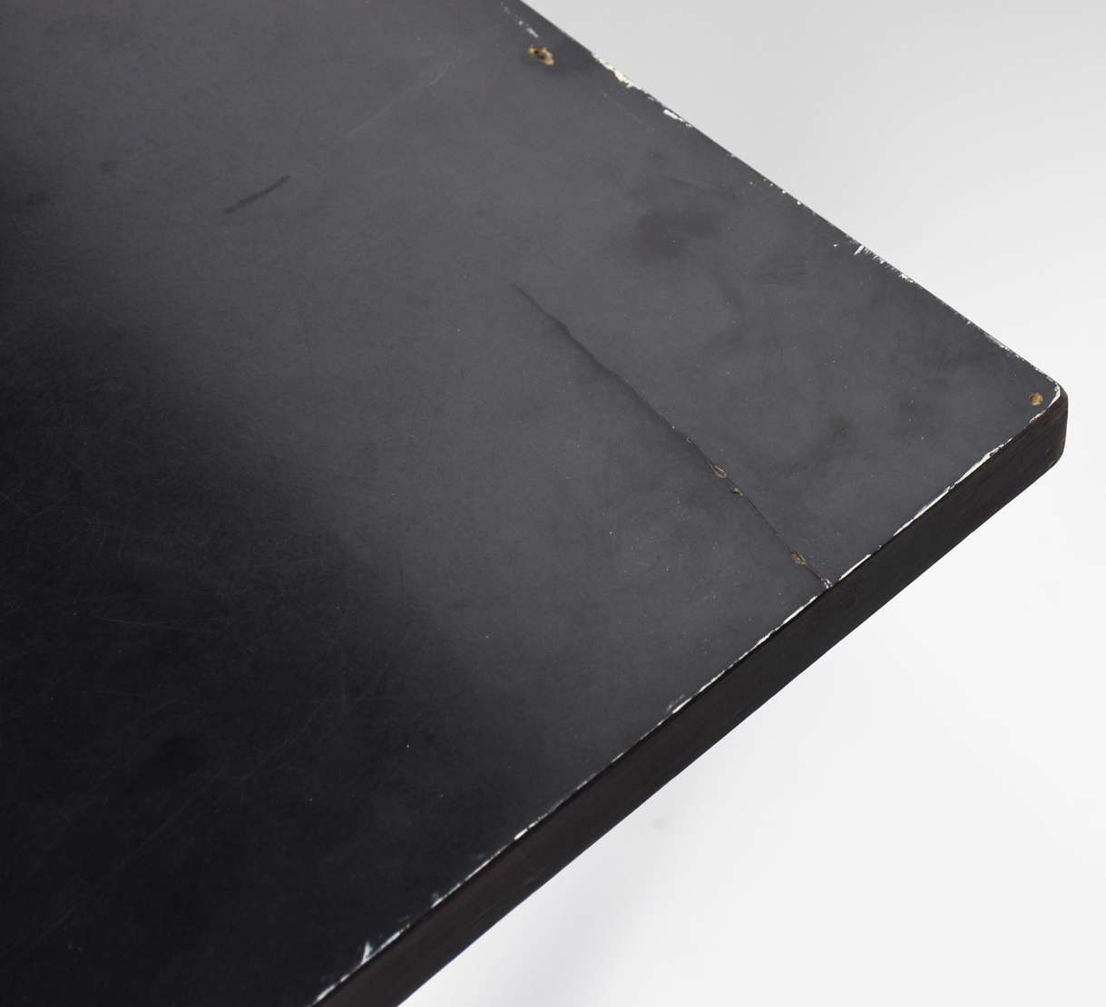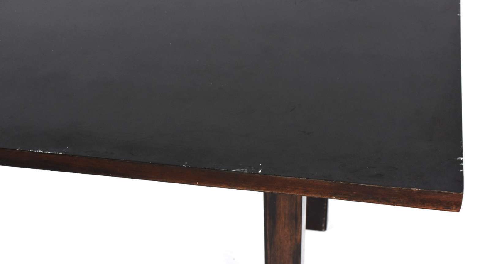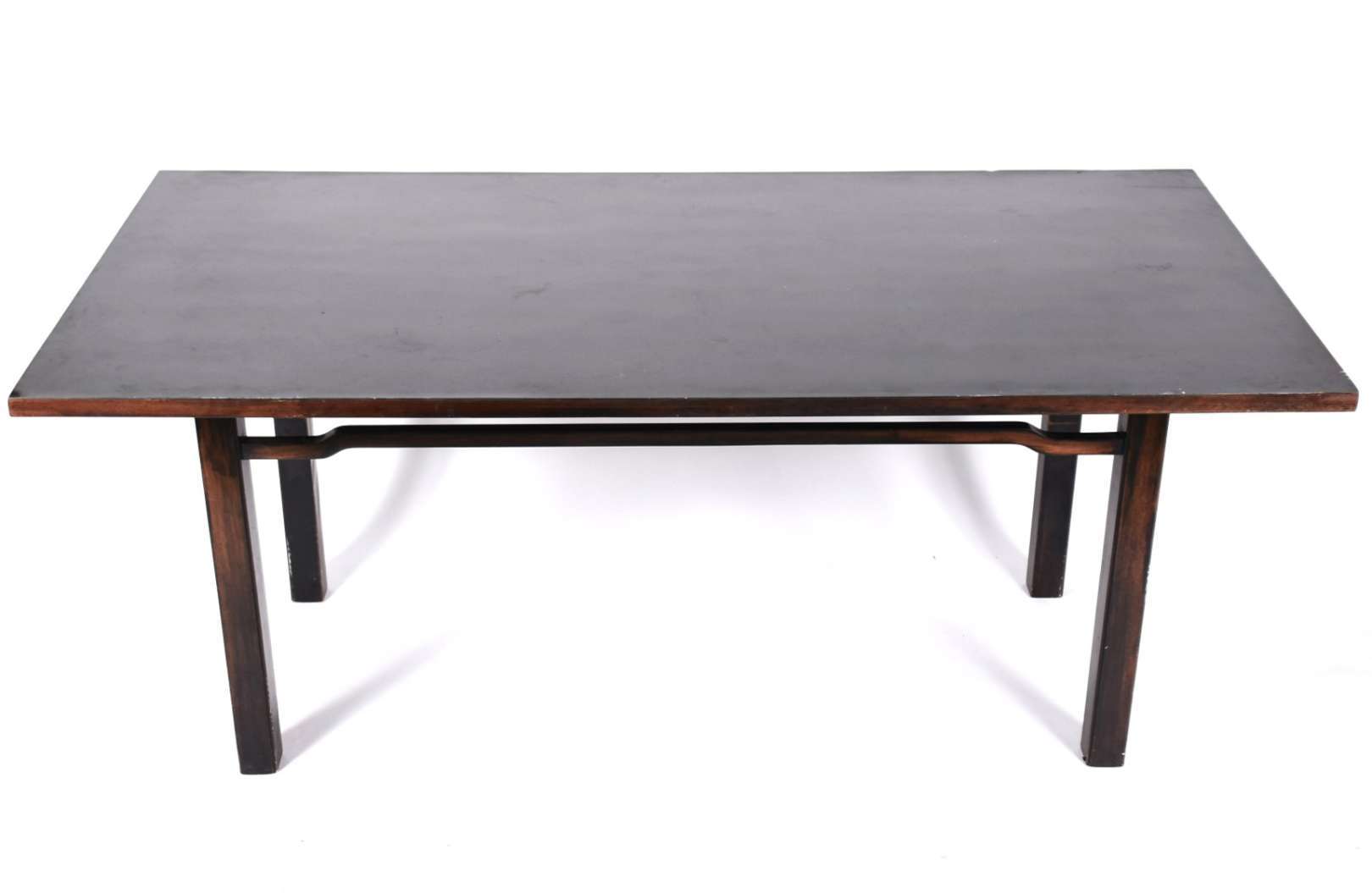 Mesa de centro de madeira nobre com tampo de mármore. Pequenas falhas na lateral da madeira. Anos 60. Selo da loja L'...