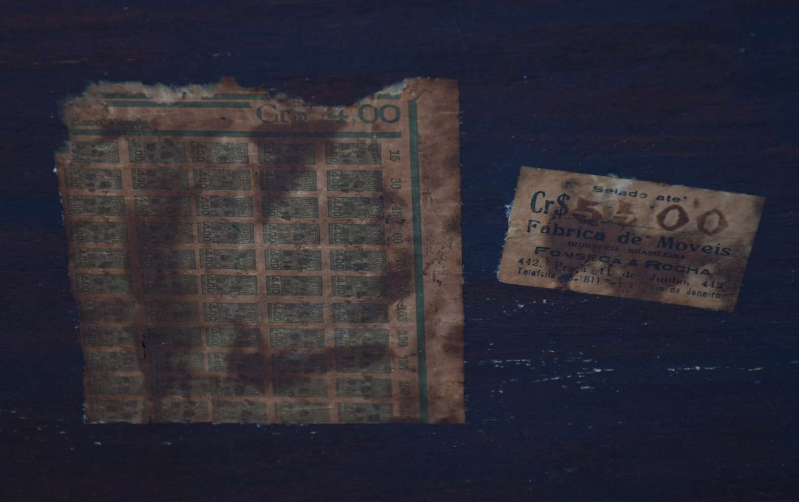 Mesa de centro de madeira nobre estilo colonial brasileiro com 2 gavetas e laterais almofadadas, pernas arqueadas lig...
