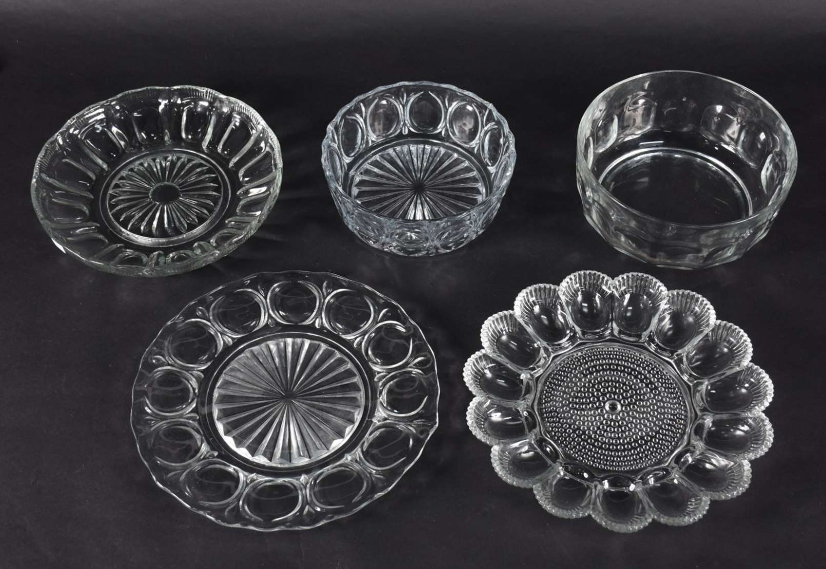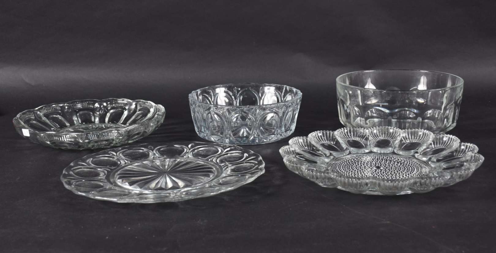 Cinco pratos diversos de vidro e cristal, para bolo e porta petiscos.