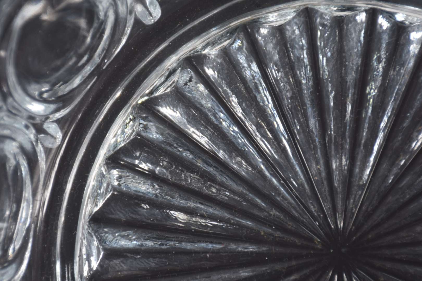 Garrafa de cristal, com bicado perto da alça.