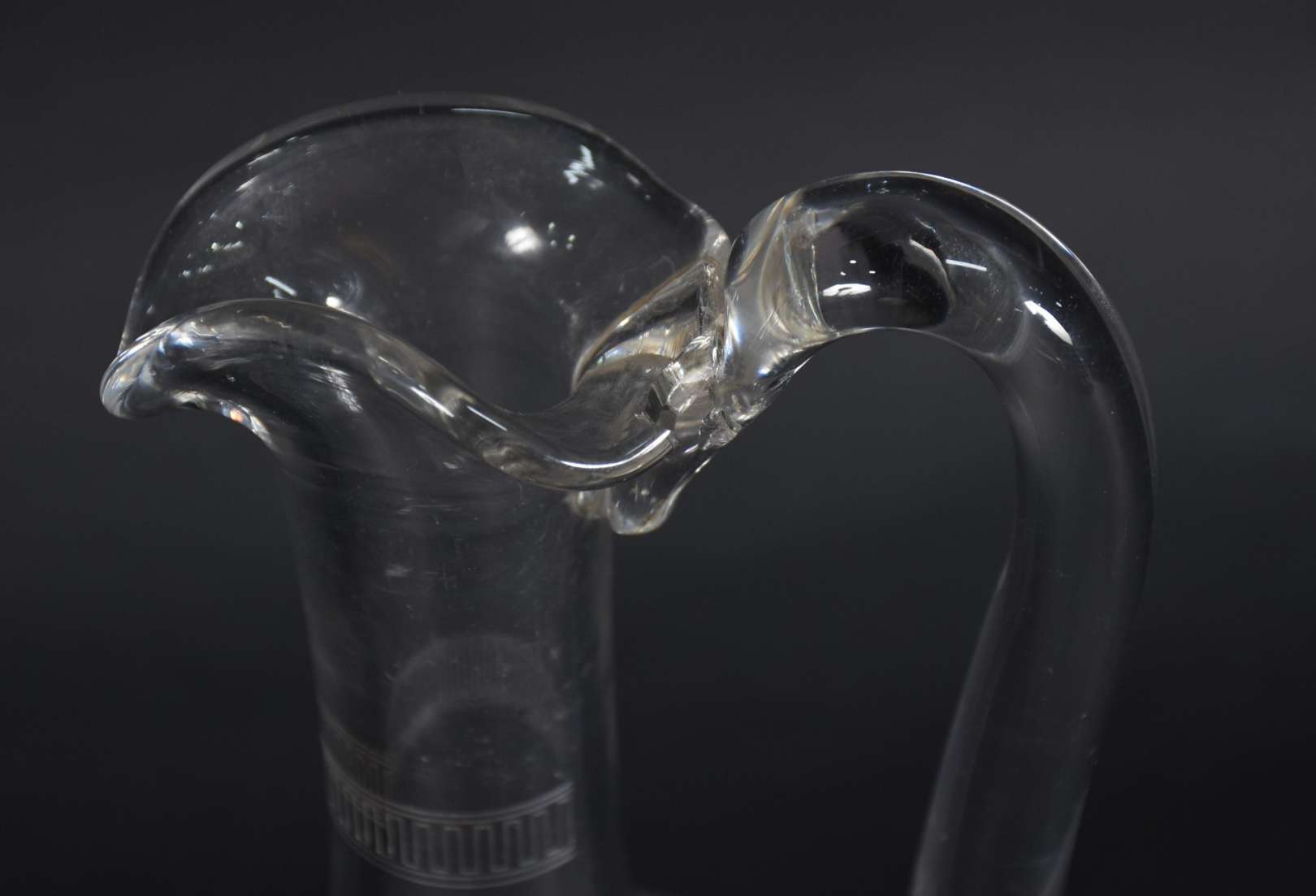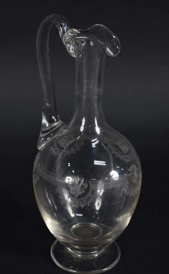 Três peças, sendo 2 jarras de vidro e cristal e galheteiro.