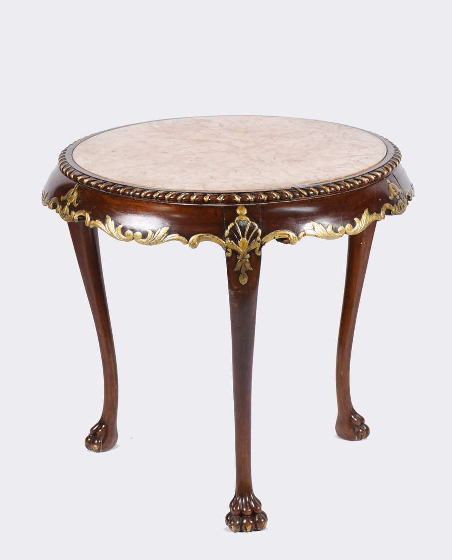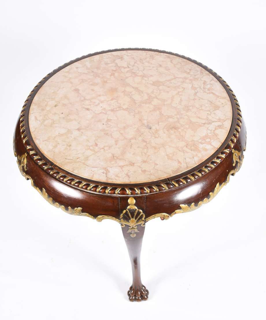 Mesa indiana com base de madeira marchetada e tampo feitio medalhão de metal dourado.