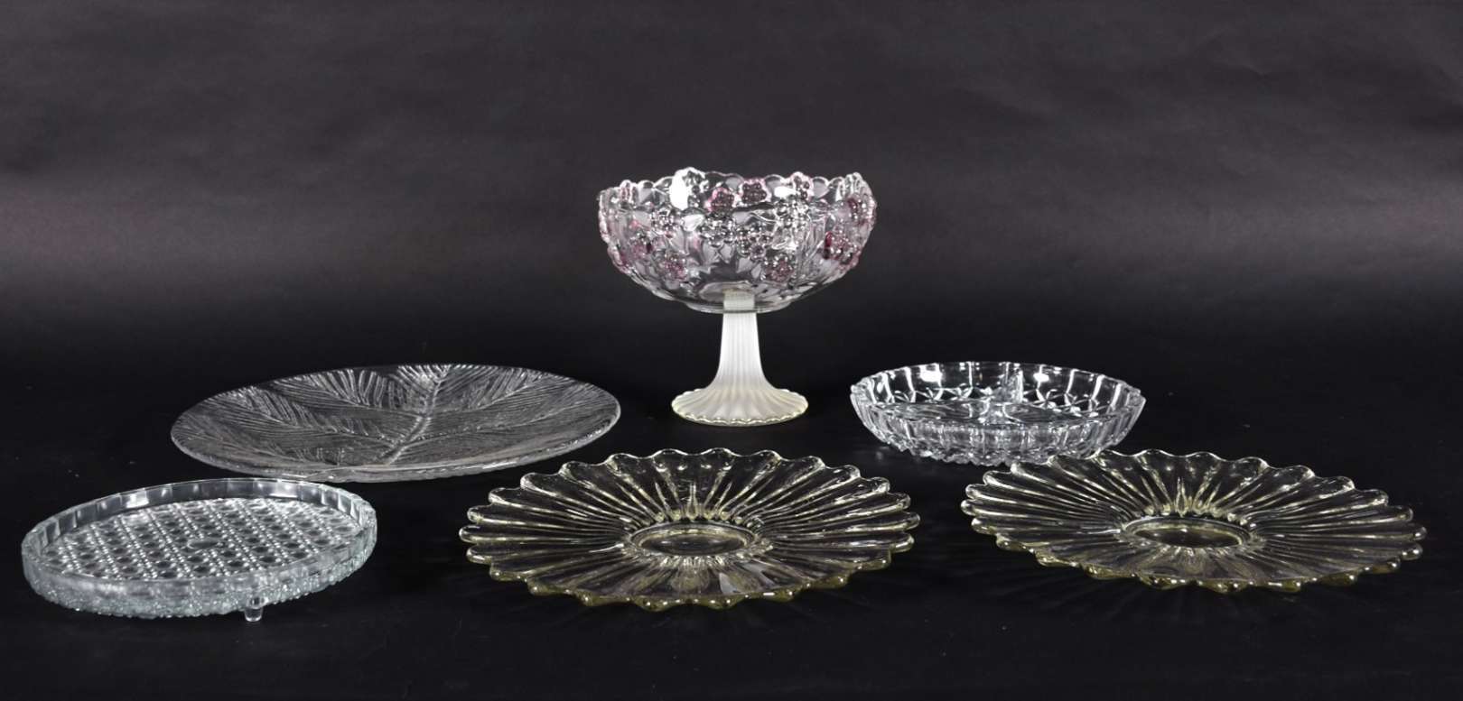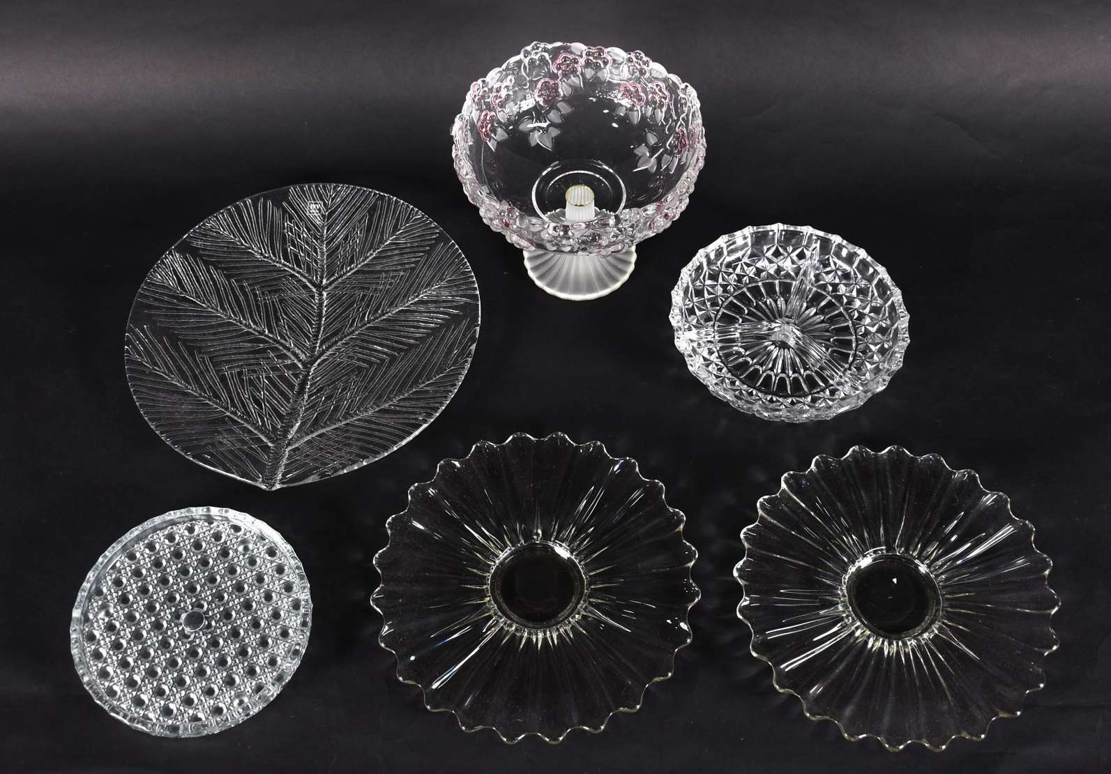 Três peças de cristal lapidado, sendo vaso, fruteira e porta petiscos.