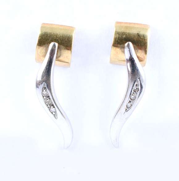 Par de brincos de ouro branco e ouro 18 k e brilhante (Por motivos de seguranças as peças não encontram-se na loja)