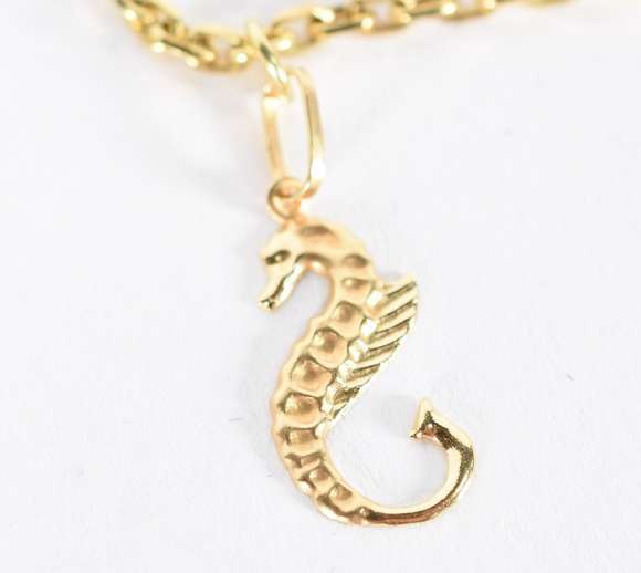 Pulseira em ouro 18 k com elós, com pingente feitio cavalo marinho (Por motivos de seguranças as peças não encontram...