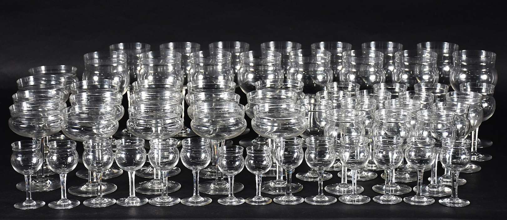 Serviço de cristal lapidado composto de: 10 taças de champagne, 7 para vinho branco e 4 para licor, alguns com bicado...