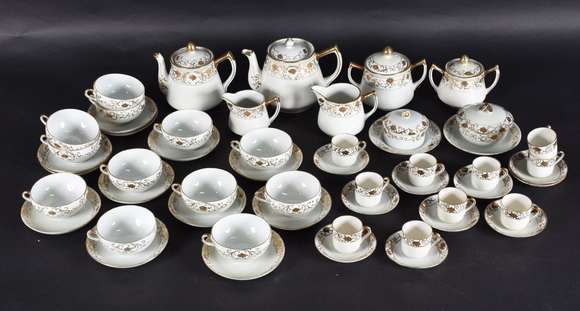 Serviço de chá e café de porcelana oriental composto de: 12 xícaras de chá com pires, 10 xícaras de café com pires (1...