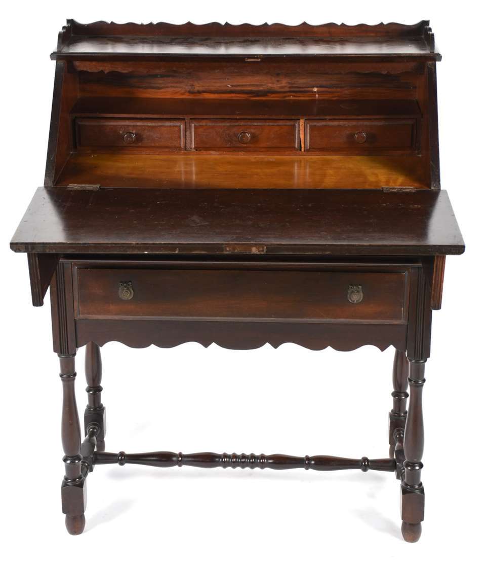 Mesa de escritório de madeira nobre, uma gaveta e pernas feitio cavalete.