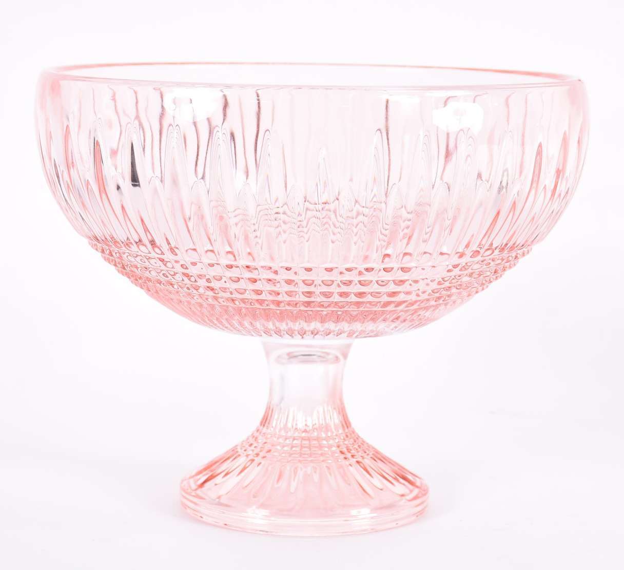 Fruteira de pé alto de vidro na cor cinza.