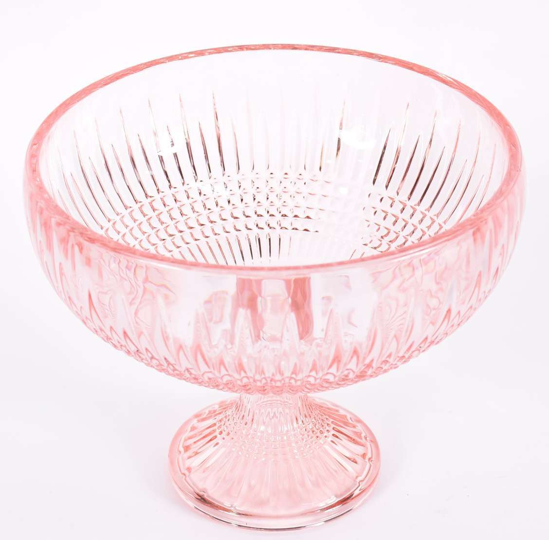 Prato para bolo de pé alto de vidro trabalhado na cor azul.