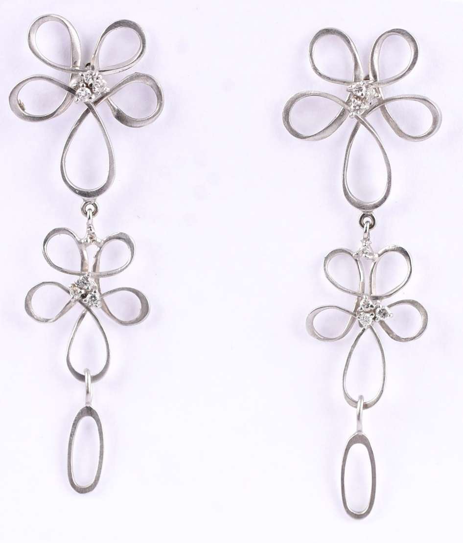 Par de brincos de ouro branco e ouro 18 k e brilhante (Por motivos de seguranças as peças não encontram-se na loja)