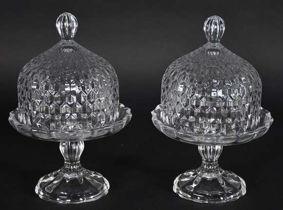 Par de manteigueiras em demi cristal de pé alto lapidado.