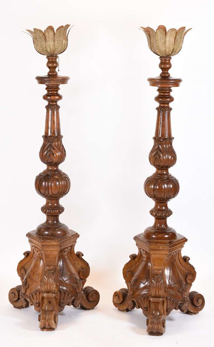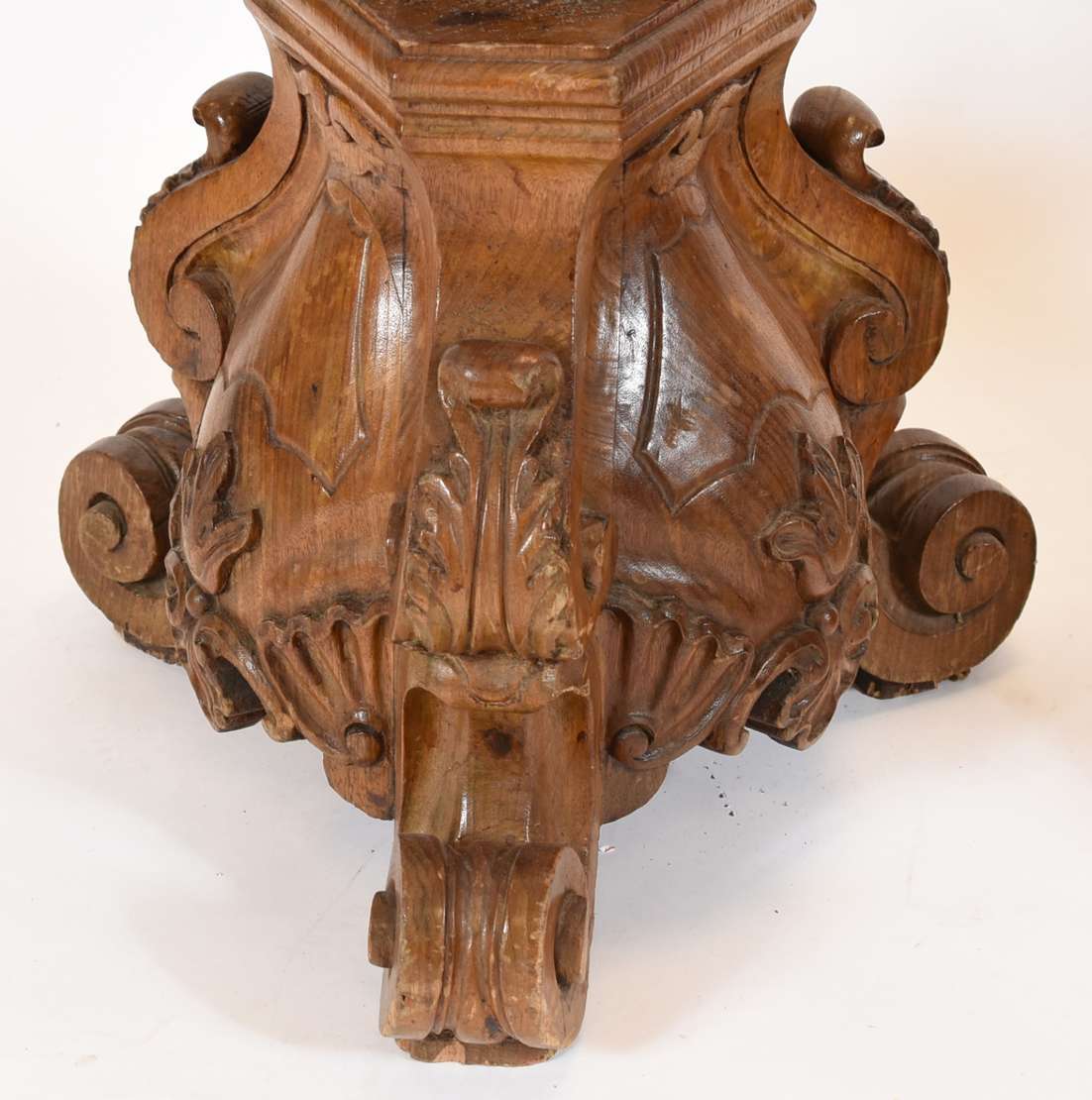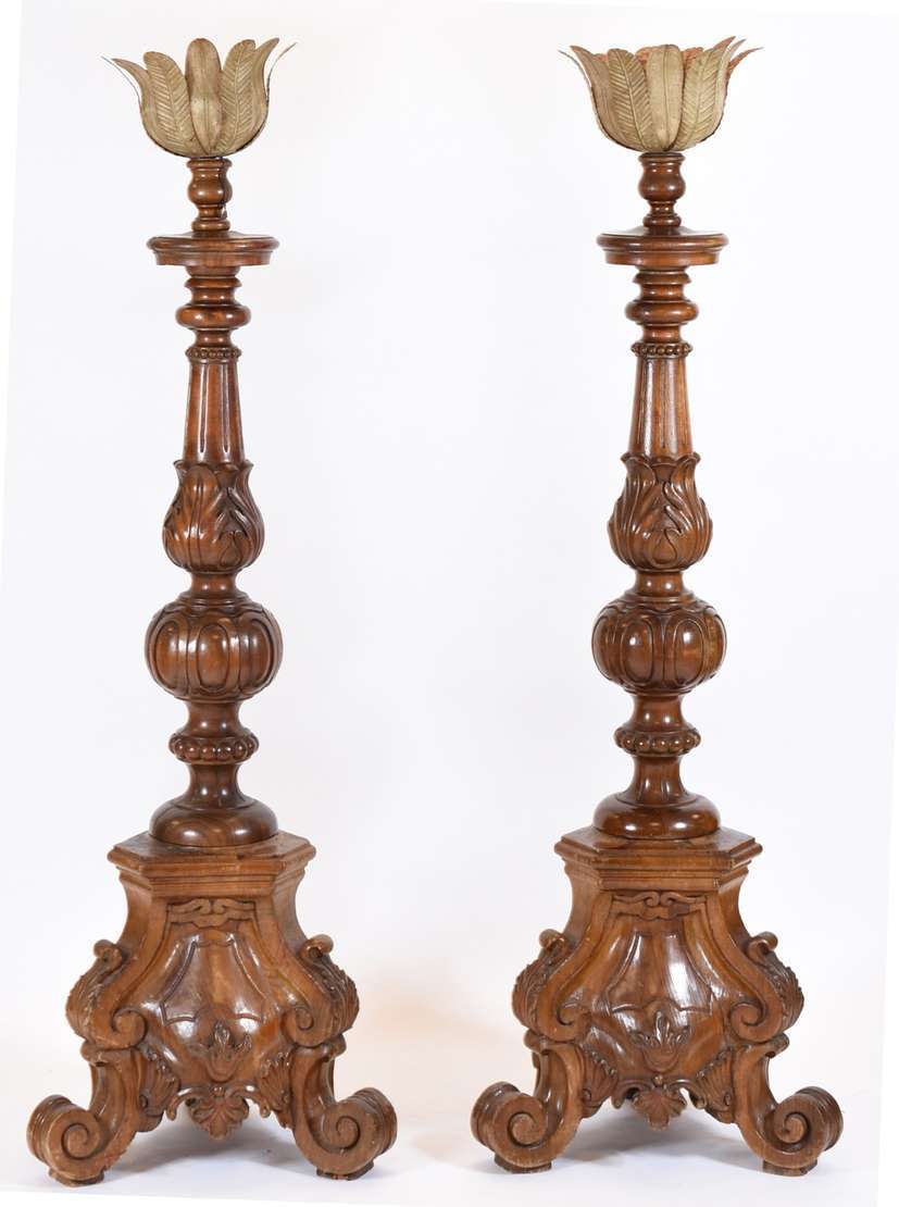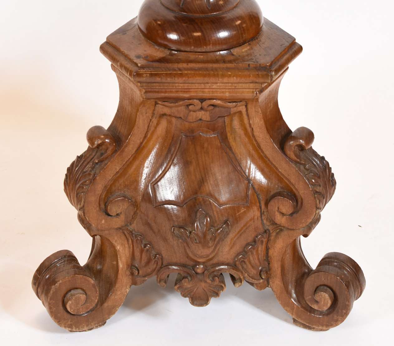 Tocheiro de chão de madeira nobre ricamente entalhada e folha de ouro.