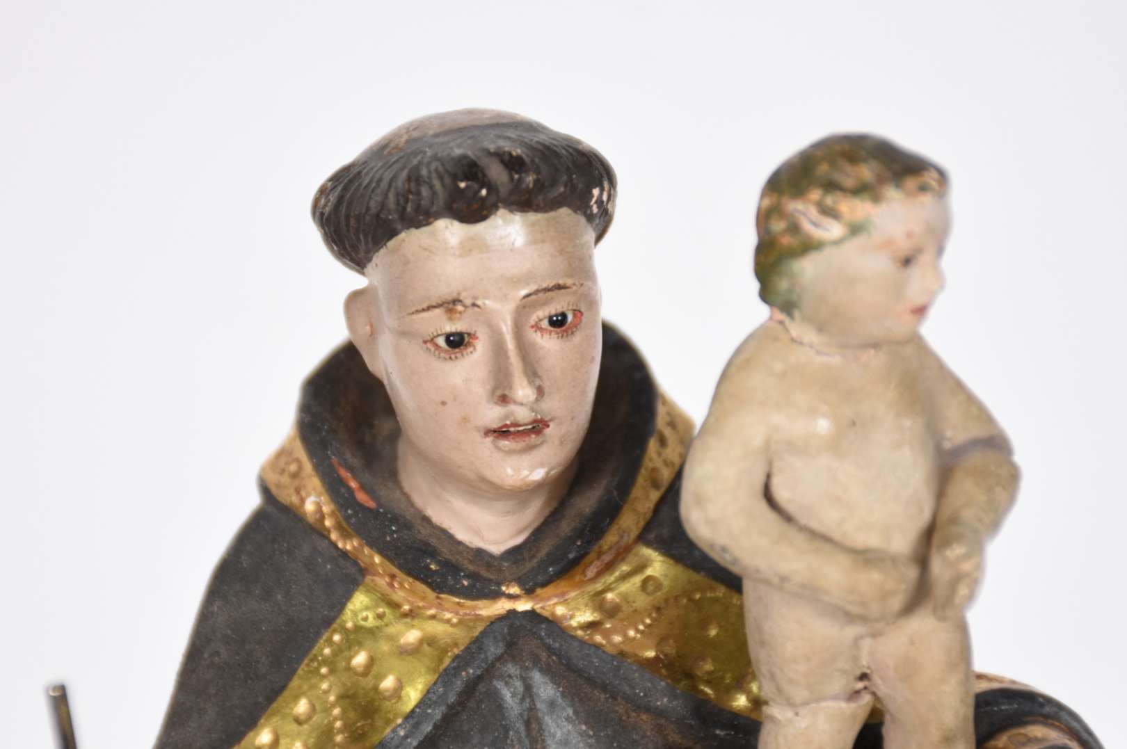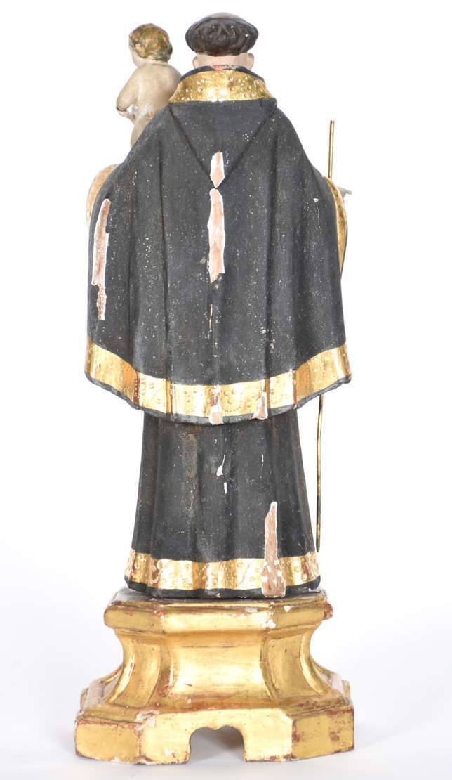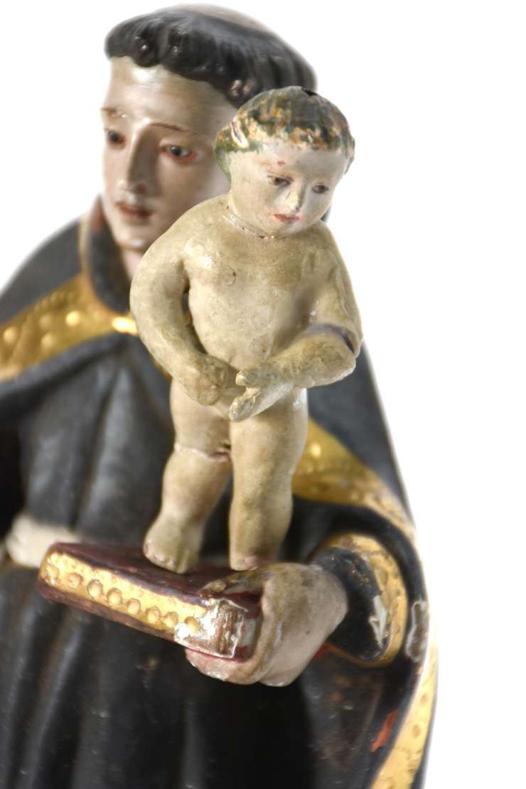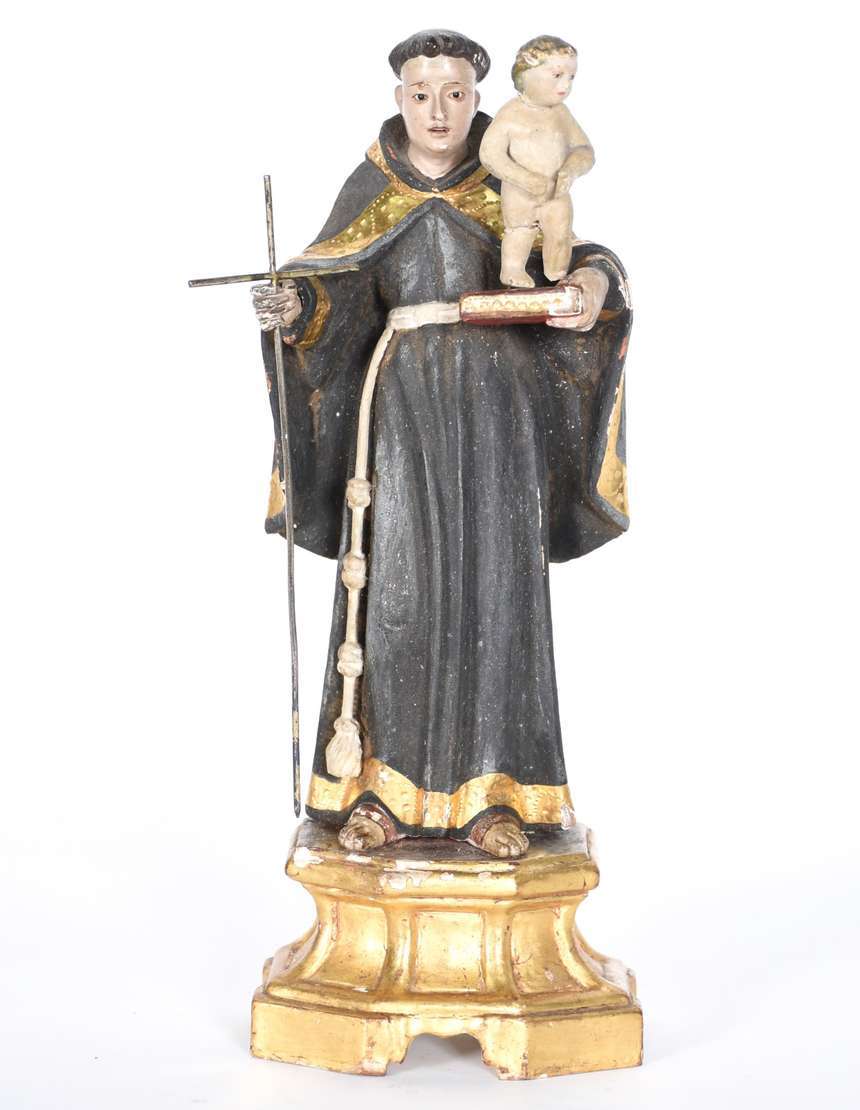 Belíssima Imagem de Menino Jesus de madeira policromada portuguesa do século XIX, base dourada com vazados.