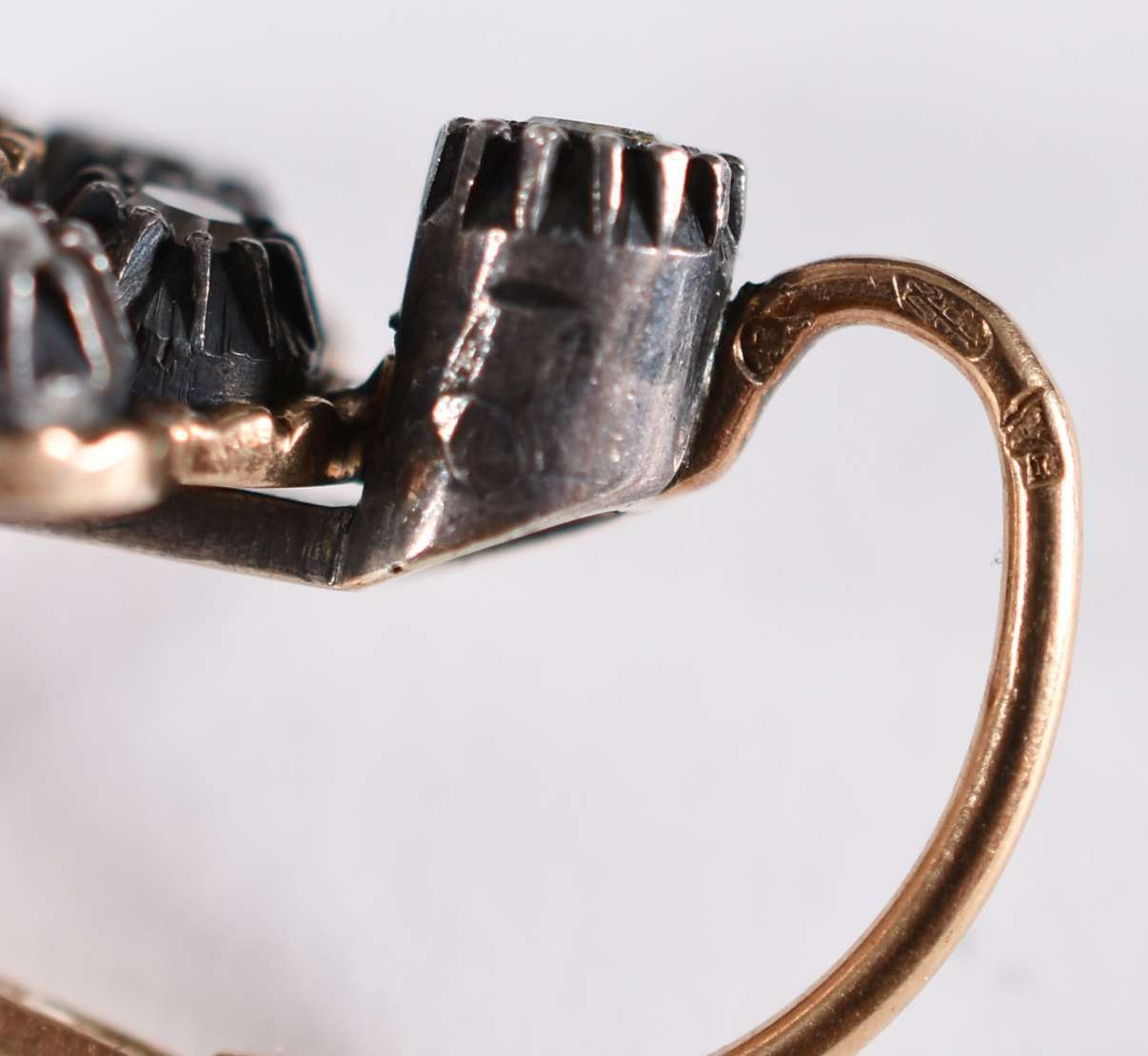 Broche/Barrete em ouro 18 k com 1 rubilita e 2 brilhantes, nas laterias 10 diamantes (Por motivos de seguranças as p...