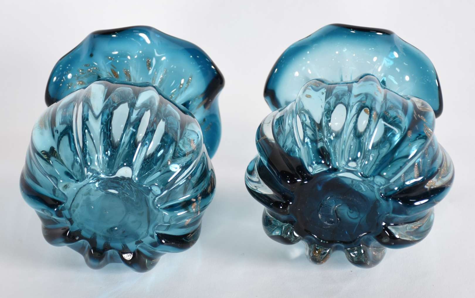 Vaso de vidro decorativo na cor azul com pó de ouro.