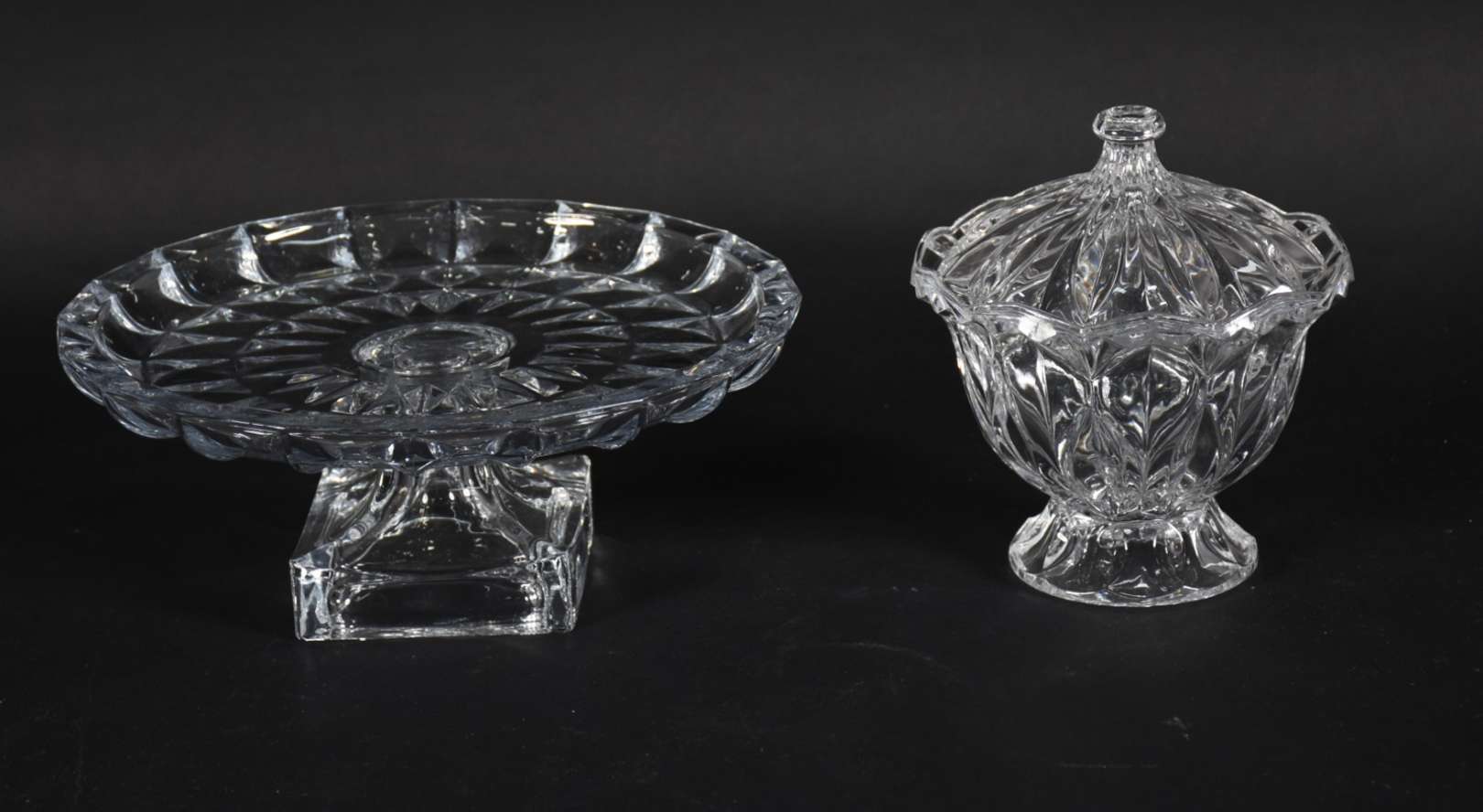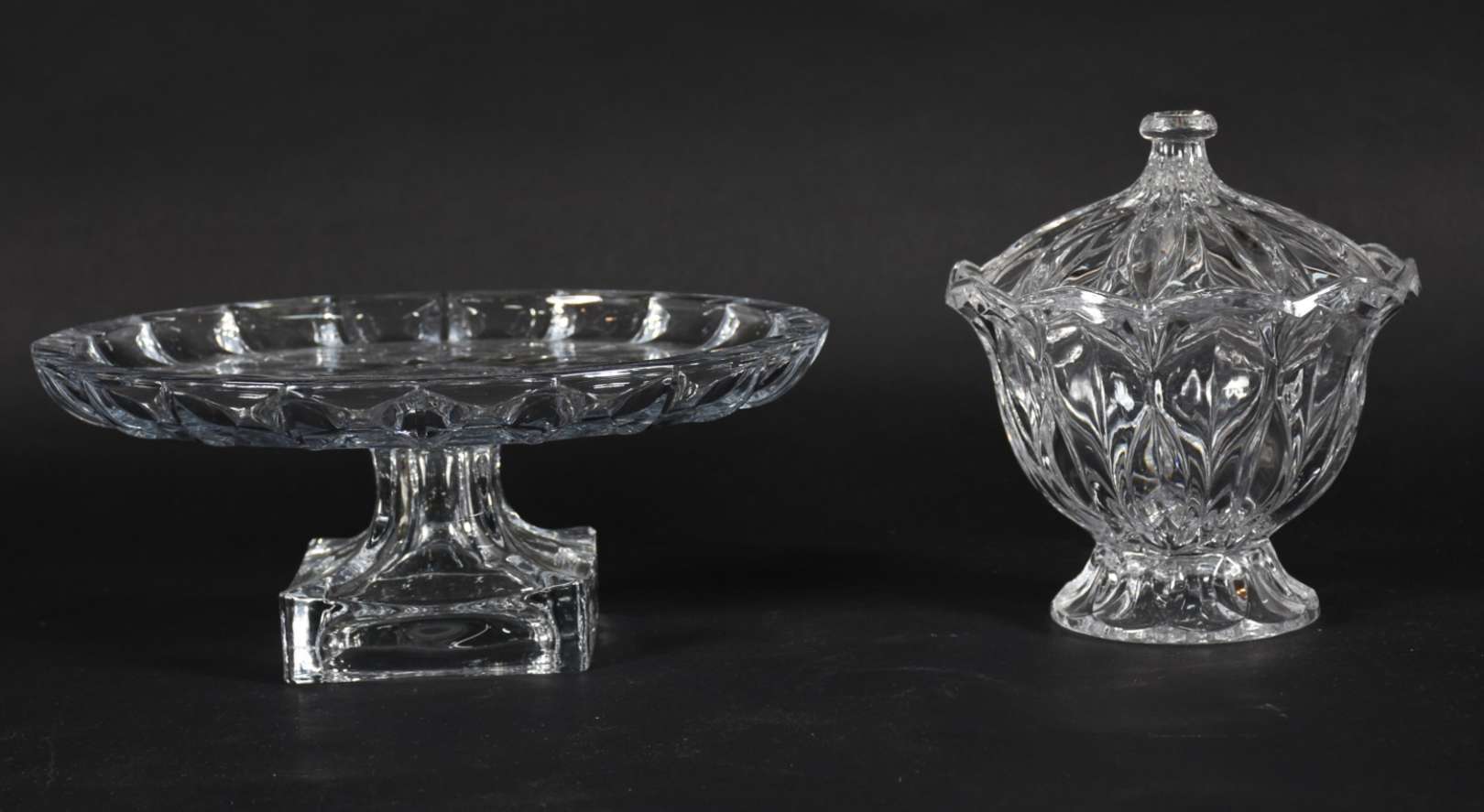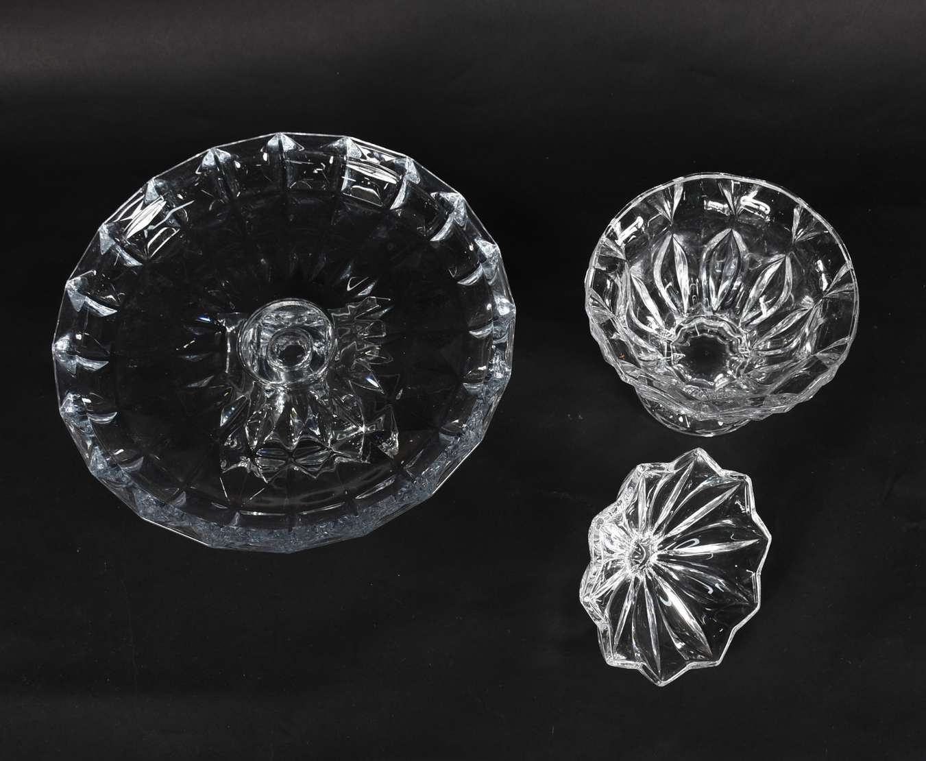 Fruteira de pé alto de cristal frances lapidação em gomos.