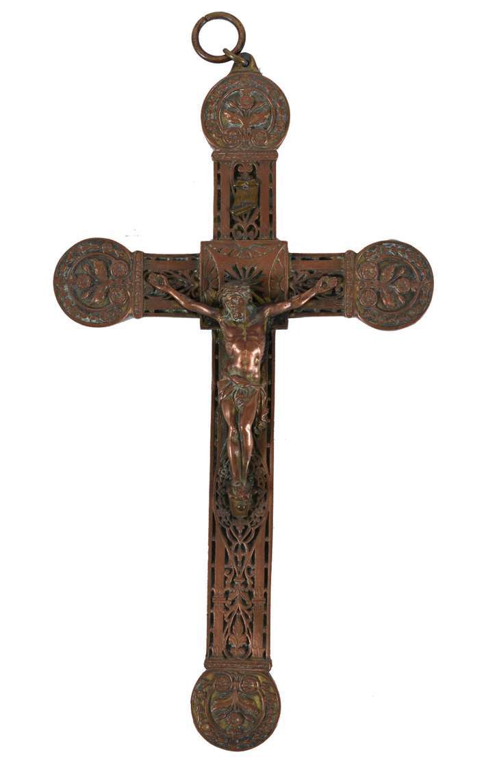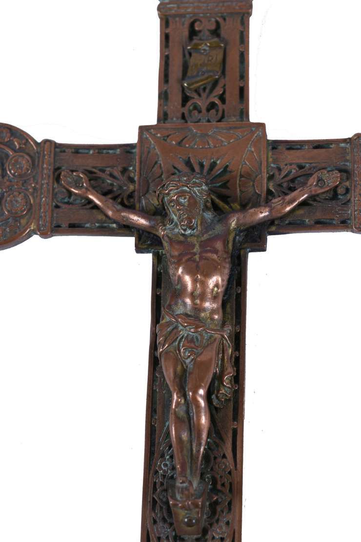 Crucifixo com figura de Cristo em bronze.